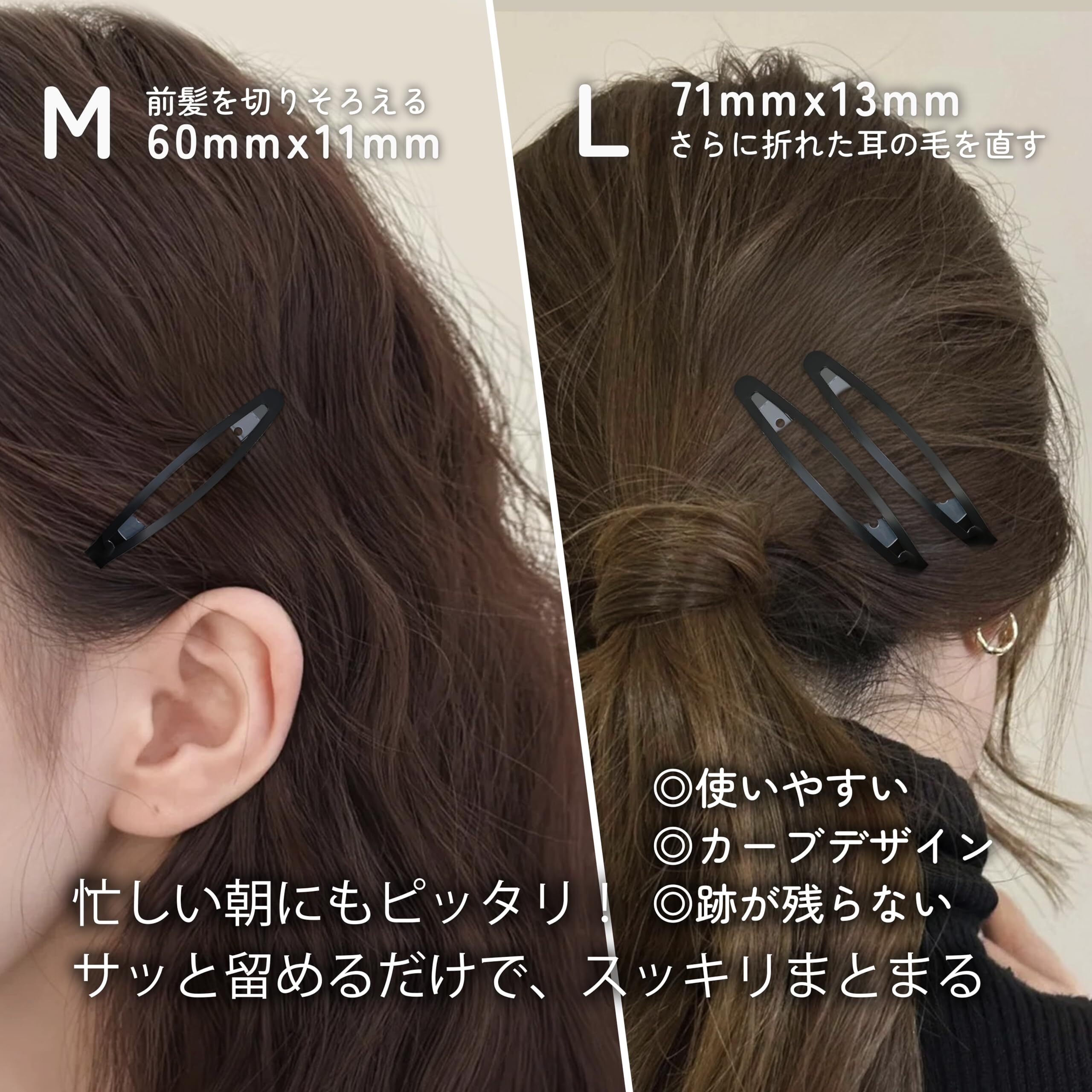 【カーブ・髪に跡が残らない】全体はカーブデザインが採用し、頭の形に自然に沿ってフィットします。髪に跡を残さず、髪を傷めることなく固定できます