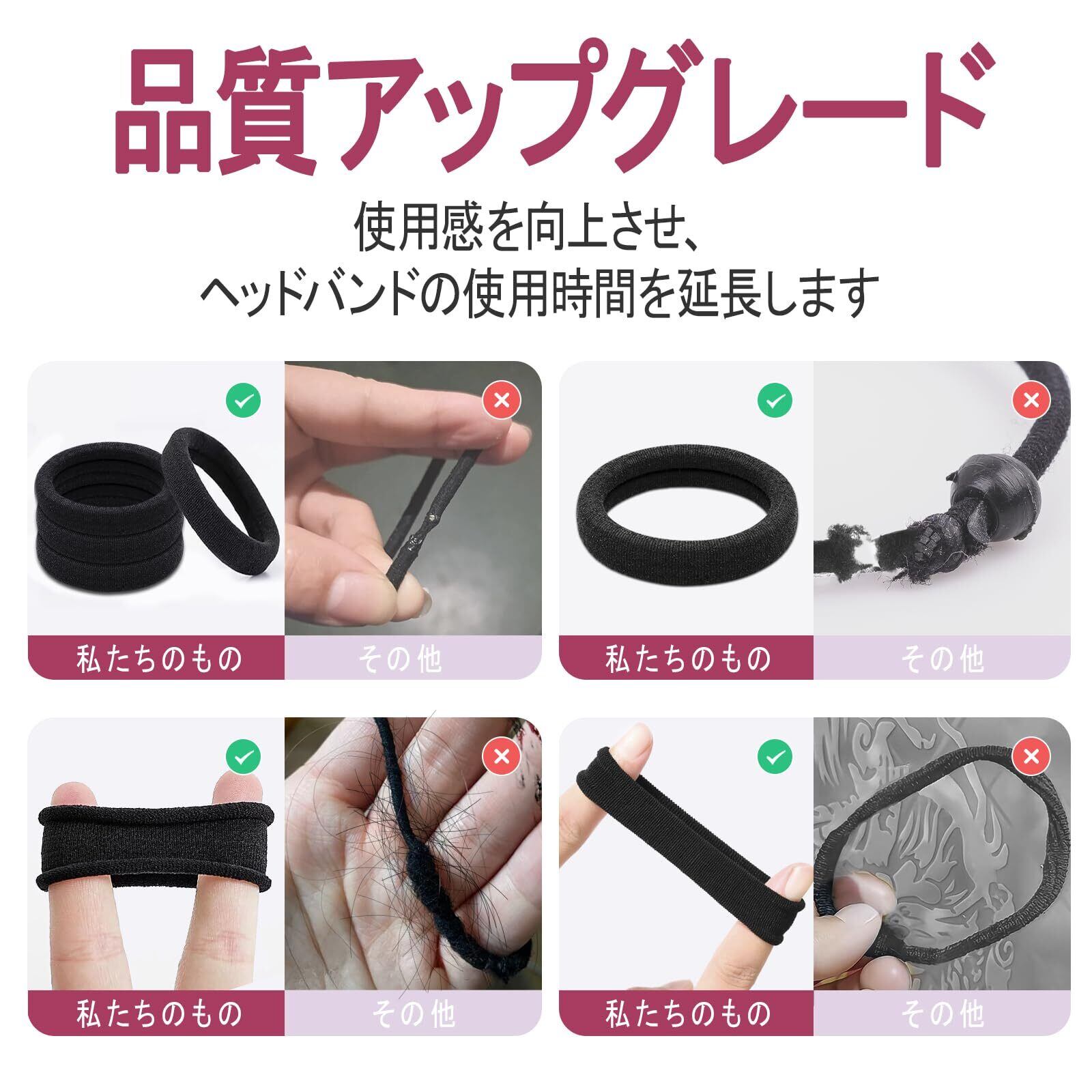 【数量】各パッケージには50本の伸縮性のヘアゴム 黒含まれており、長期間使用するのに十分です。