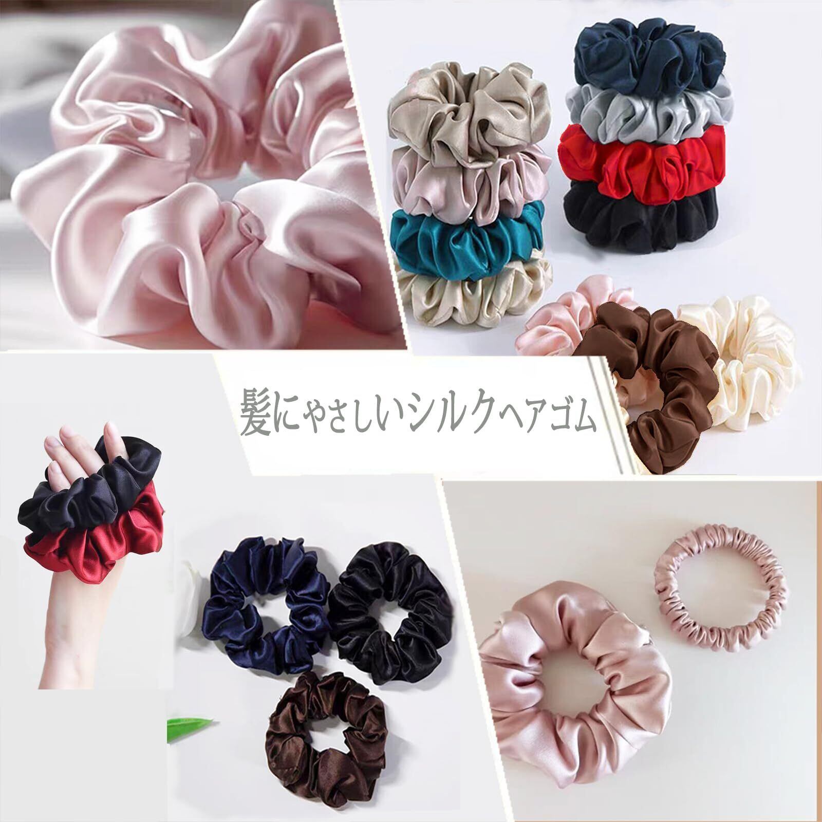 シュシュ シルク ヘアゴム シュシュ 黒 シルクシュシュ 100% silk ヘアアクセサリー 大人 大きめ 髪留め まとめ髪 ポニーテール シンプル かわいい ファッション雑貨 レディース 睡眠 就寝前 シルク製 コンパクト 結婚式 (10 ブラック)