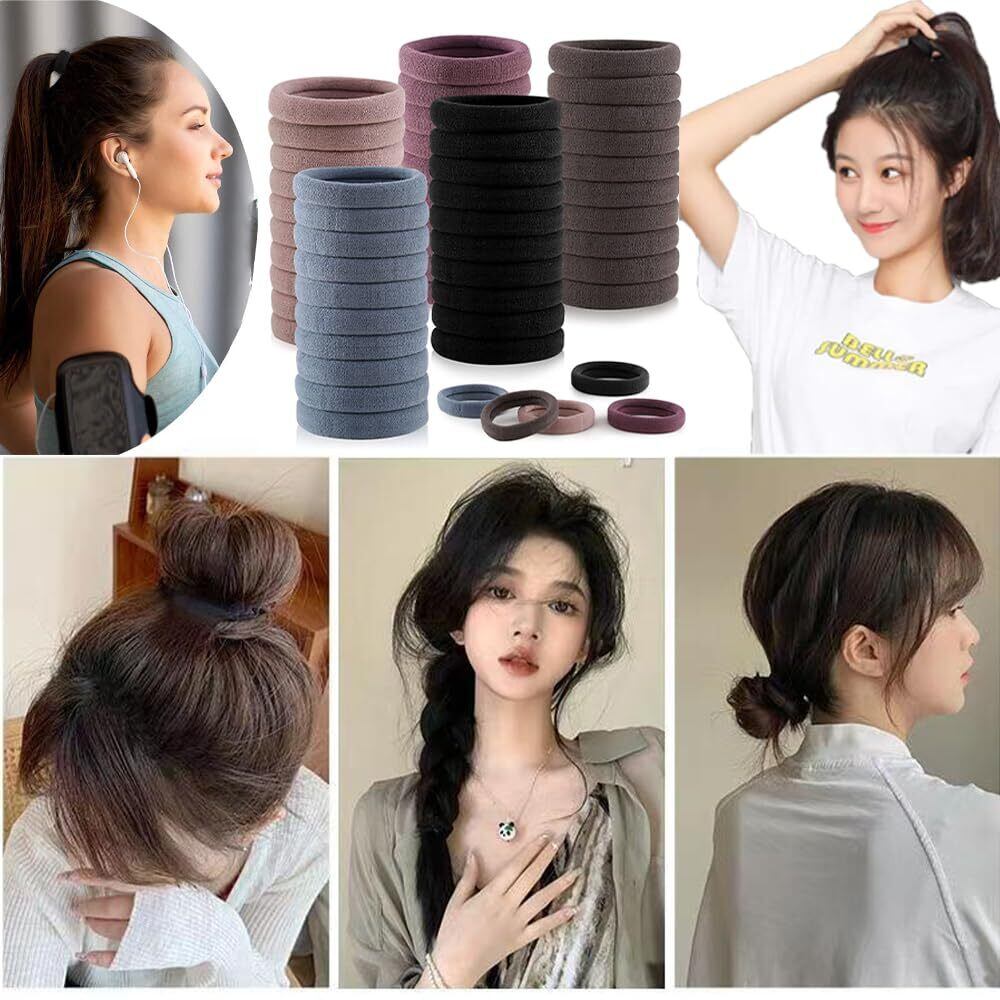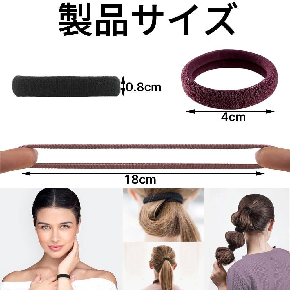 【耐久性と伸縮性】ヘアバンドは伸縮性の高い厚い素材で作られており、柔らかく伸縮性があり、髪を傷めることなく髪を保持することができます。髪をしっかり固定でき、緩みにくいです。 【数量】100個入りです 5色。 毎日のお揃いや交換のニーズを満たすことができます。ヘアゴムの直径は約4cmです。 【髪を傷めない】継ぎ目のないデザインと柔らかい素材で、使用と取り外しがとても優しく、髪を引っ掛けたり引っ張ったりしません。18cmまで伸ばせますが、簡単に引っ張られません。 【幅広い用途】細い髪、太い髪、ストレートヘア、太い髪、巻き髪に適しており、簡単に美しいローポニーテールやハイポニーテールに結ぶことができ、エレガントでスタイリッシュで、あらゆる種類の服装やヘアスタイルに完璧にマッチします。 【子供と女性に理想的】ヘアバンドはシンプルで実用的で、ポニーテールをよく保持し、毎日の使用に適しています。学校、家庭、オフィス、ジムなど様々な場面で使用できます。