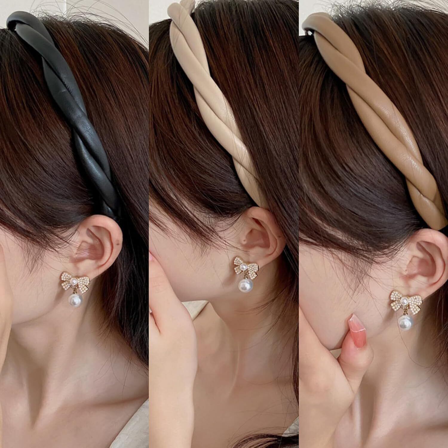 【大人かわいいシックなデザイン】レザー風の落ち着いたデザインのカチューシャ。ソフトな付け心地で使いやすく、一つ加えるだけでトレンド感のあるヘアスタイルに大変身です。