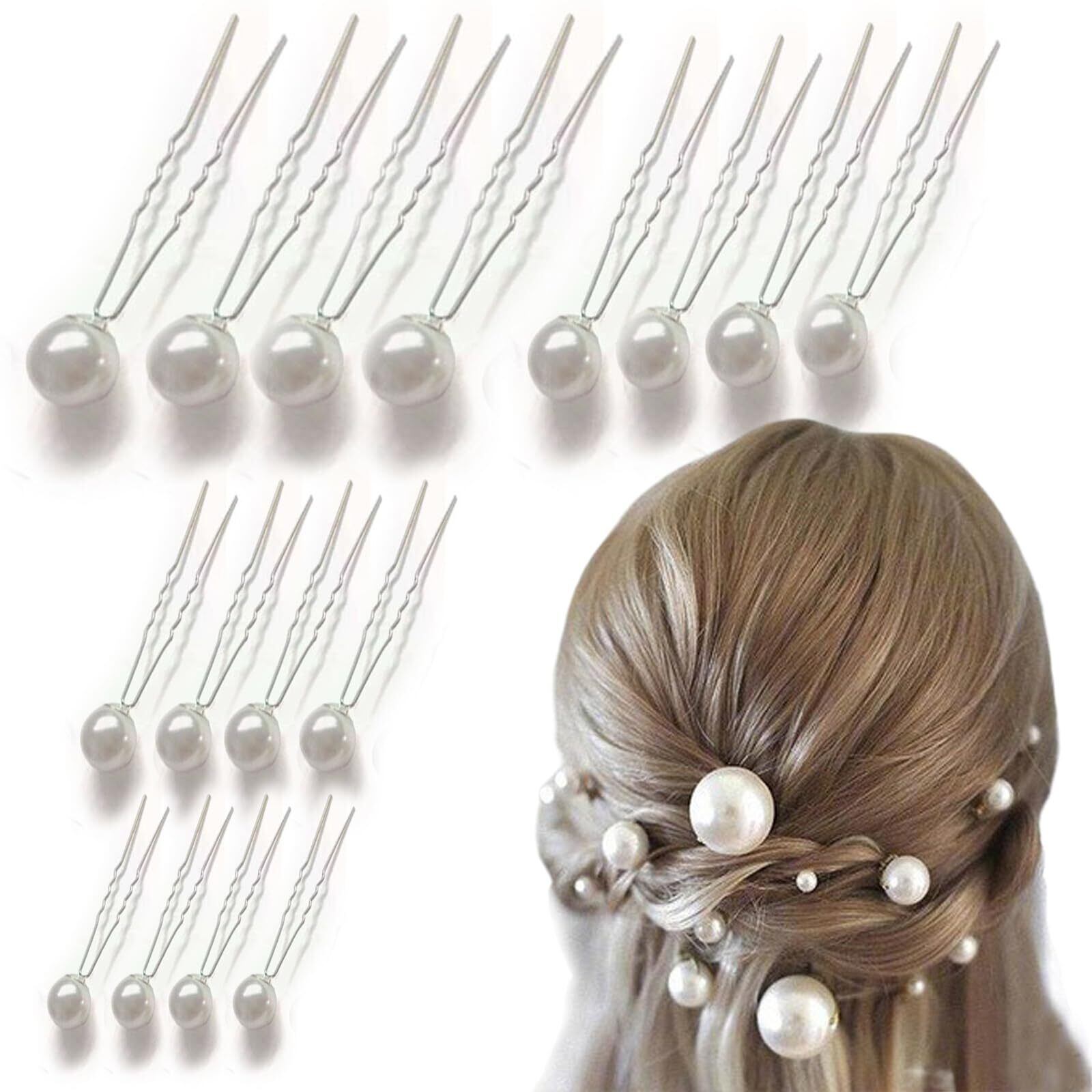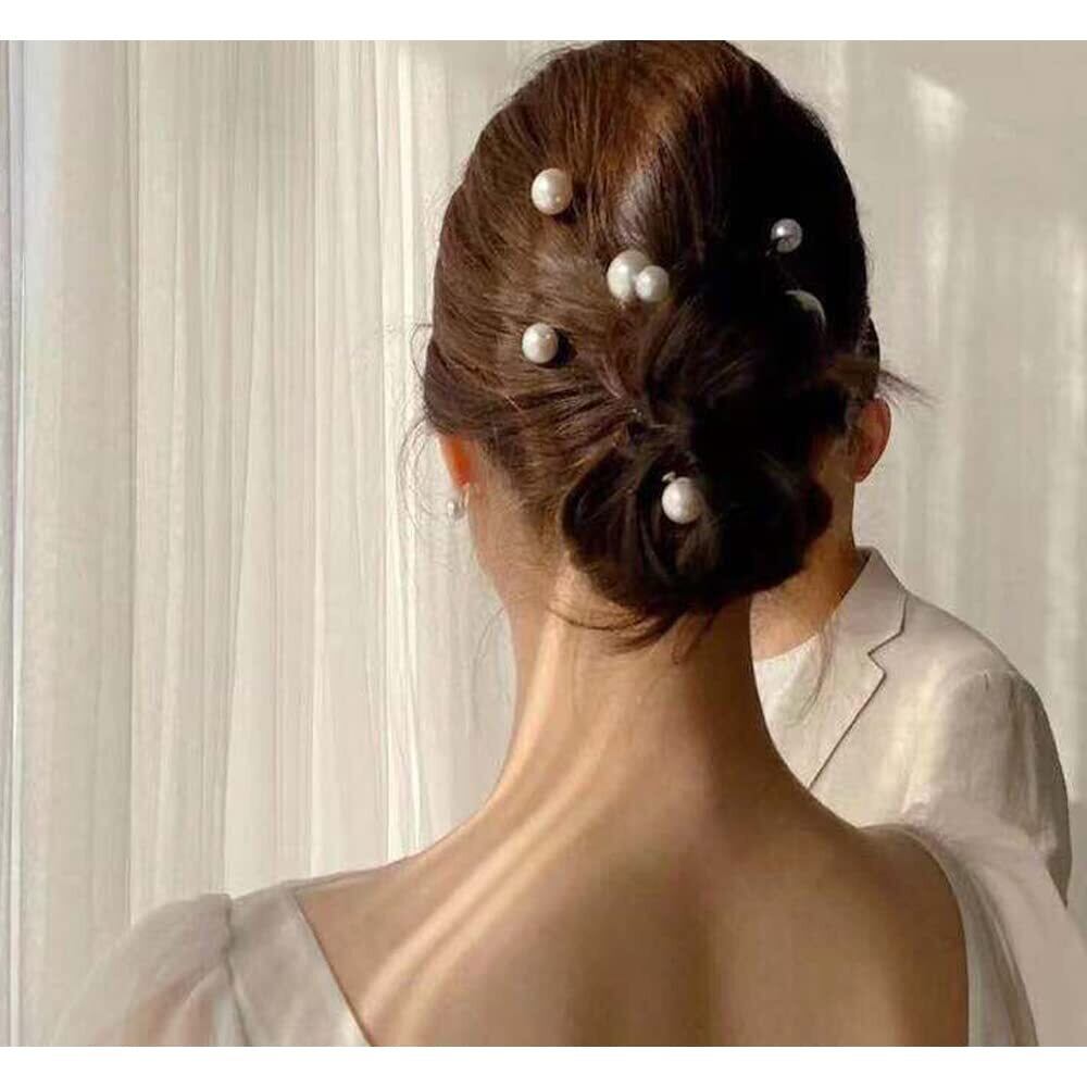 DFsucces パール 髪飾り パールピン Uピン ヘアピン 髪留め 前髪 ヘアクリップ 普段使い 和装 撮影 結婚式 ウェディング パーティー 花嫁などの髪飾り用 (16, シルバー)