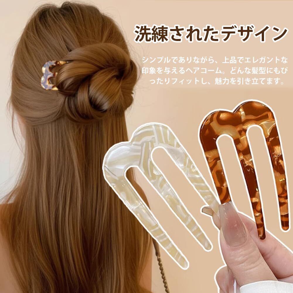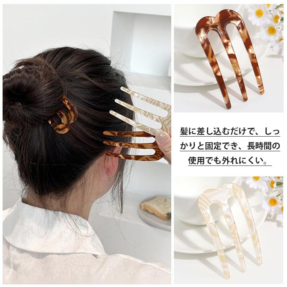 CHENLONB ヘアコーム かんざし 簪 2点セット おしゃれ べっ甲柄 シンプル 髪飾り 和装小物 結婚式 成人式 誕生日 二次会 パーティー レディース ヘアアクセサリー