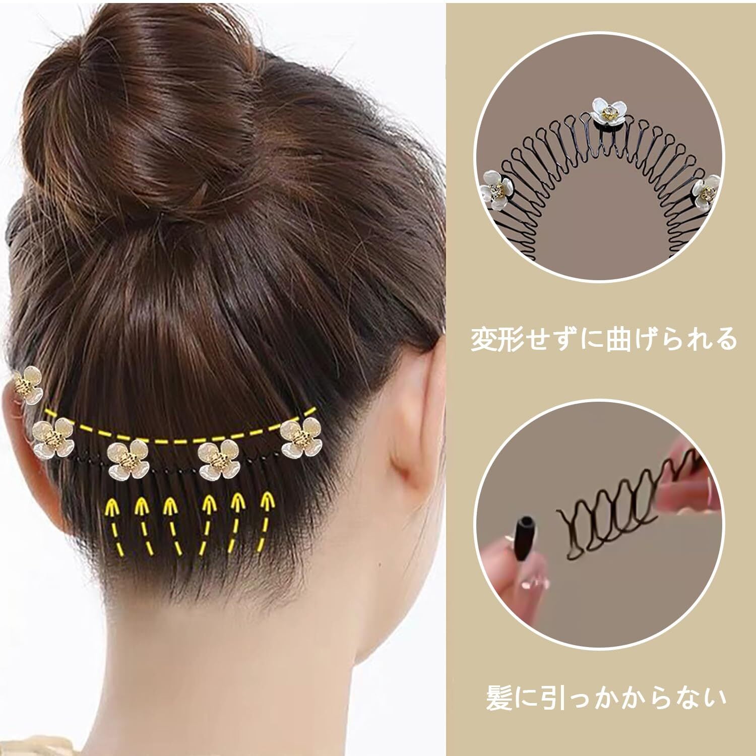 髪に優しい: コーム型なので差し込むだけで簡単に装着でき、コームを差し込んで好みの方向に変えるだけ。顔の前の髪を取り除き、頭の丸みに合わせて曲げることもできます。傷から髪を保護します。
