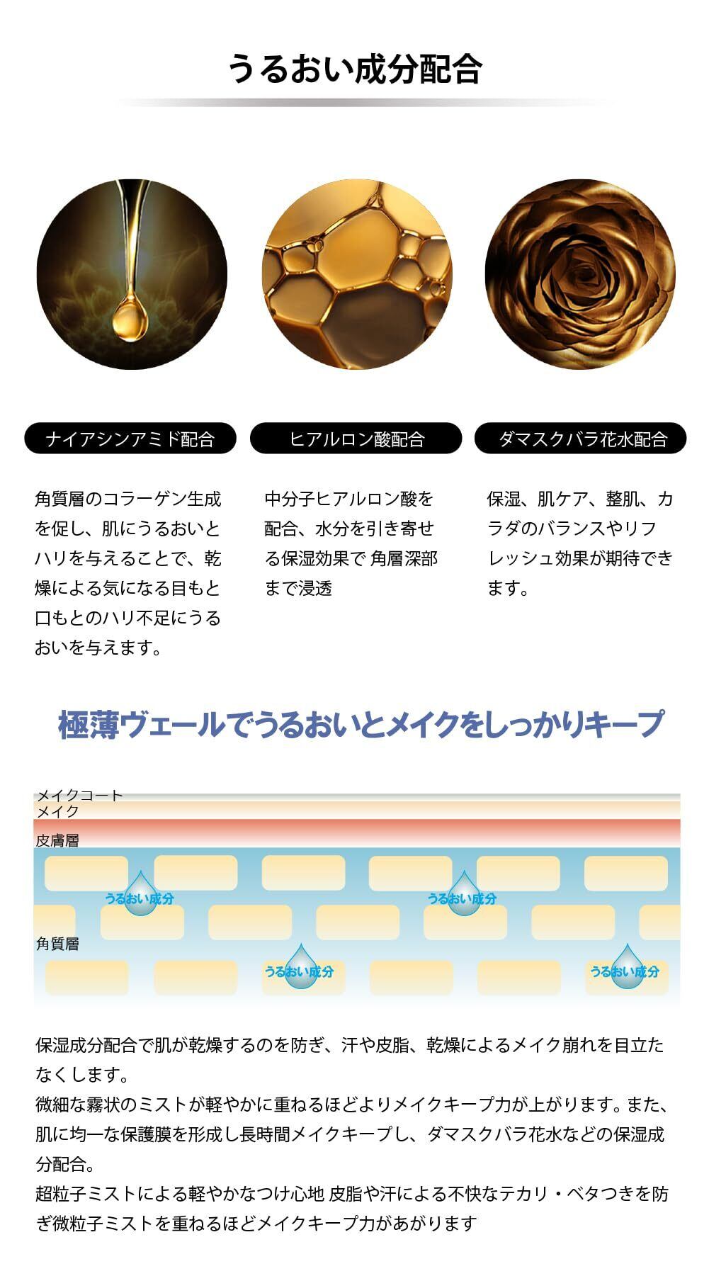 ・軽やかかミストが重ねるほどメイクキープ力があがります。