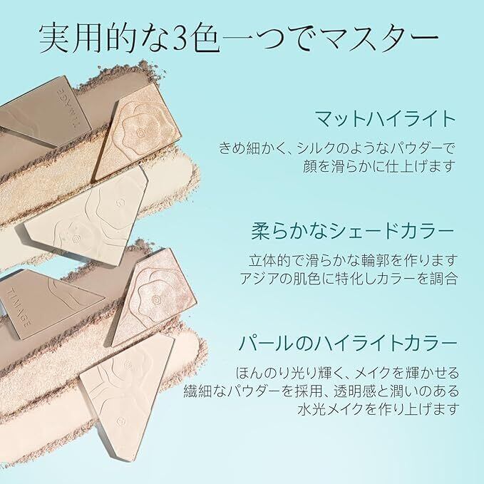 商品特長 3色(マットハイライト、ソフトシェード、パールハイライト)が1つのパレットに、 きめ細かいパウダーは色がよく、初心者でも簡単に立体感を作れます。