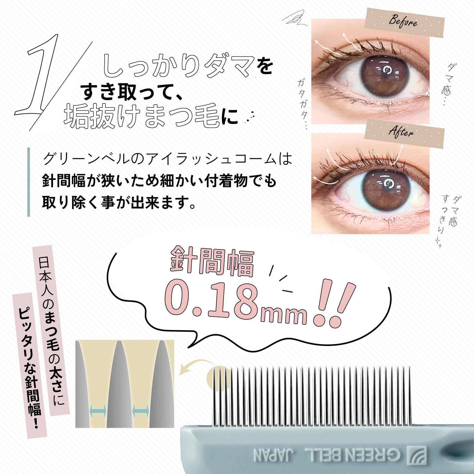 平均的な日本人のまつ毛の太さに寄り添う0.18mmの針間幅。せまい針間幅で細かいダマを取り除き、より綺麗なまつ毛に仕上がります。折りたたんでクシ歯を収納&保護できるので安全!携帯にも便利です。