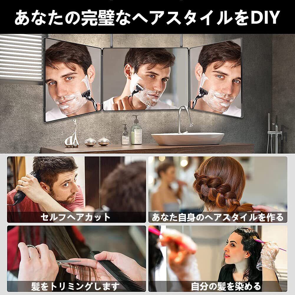 【三面鏡】セルフカット 鏡、360度回転により、あらゆる角度から頭と顔などを快適に見ることができ、毎回完璧なDIYヘアカットを得ることができるでしょう。卓上での使用もでき、座ってメイクやヘアセットを行う場合にも使える万能型です。(保護フィルムを剥がしてからご使用ください。)