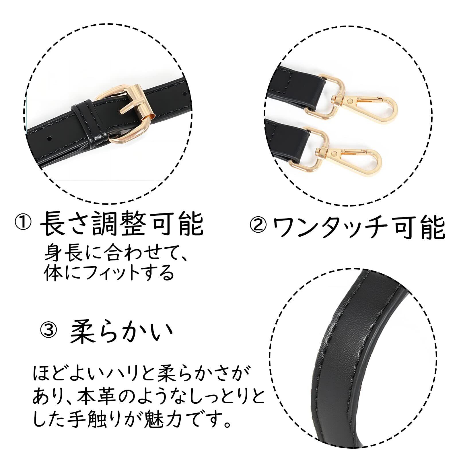 【コーディネート】バッグやポーチのショルダー紐が破損したり、擦れてきたりした際の交換用として、コーディネートにあわ せてイメージチェンジさせたい時など に最適なバッグ用、ポーチ用のショルダーストラップです。