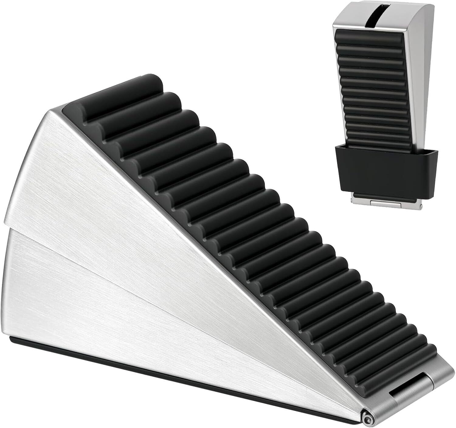 DOIOWN ドアストッパー 強力固定 大型 調整式 スプリング式 ドアストッパージャマー ゴム製 収納ホルダー付き 厚い重いドア対応 高さ調整約7.6cm隙間用 シルバー
