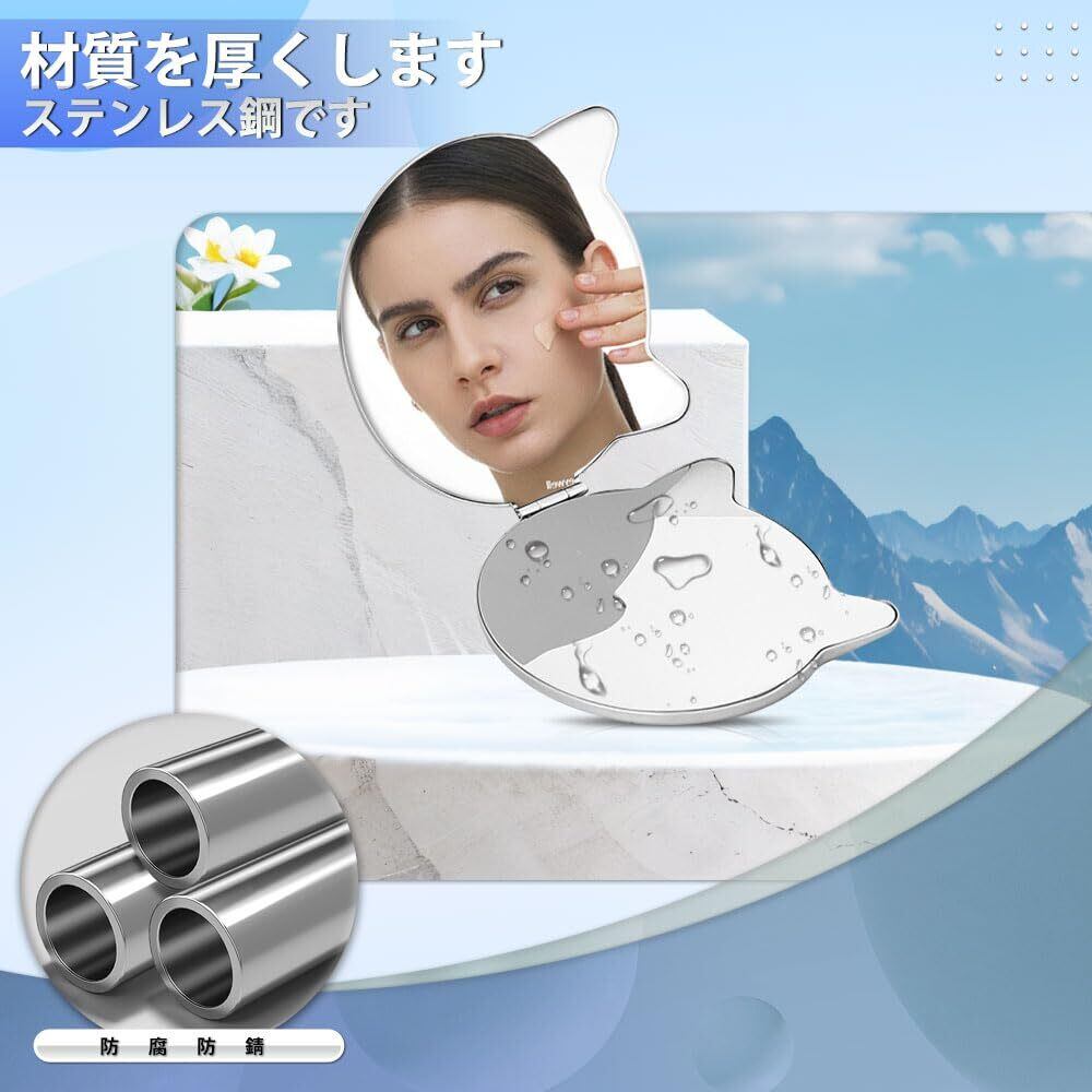 ネコ匹 手鏡 コンパクトミラー おしゃれ 折りたたみミラー ステンレスミラー 両面鏡 割れない 両面鏡 ステンレス製ミラー プレゼント 超軽量 人気 おしゃれ 女性 誕生日 可愛い ハンドミラー持ち運びに便利 (ネコ匹)