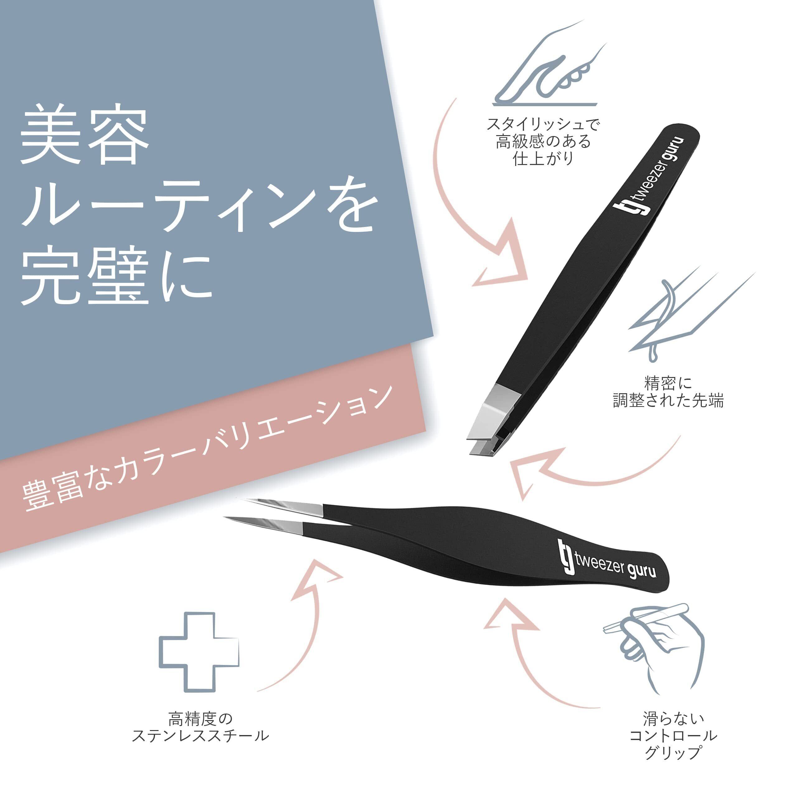 TweezerGuru 毛抜き ピンセット 眉毛抜き 精密 ステンレス 鼻毛 ヒゲ とげぬき 黒ずみ 角栓 角質取り 先斜め 先端極細 2本入り