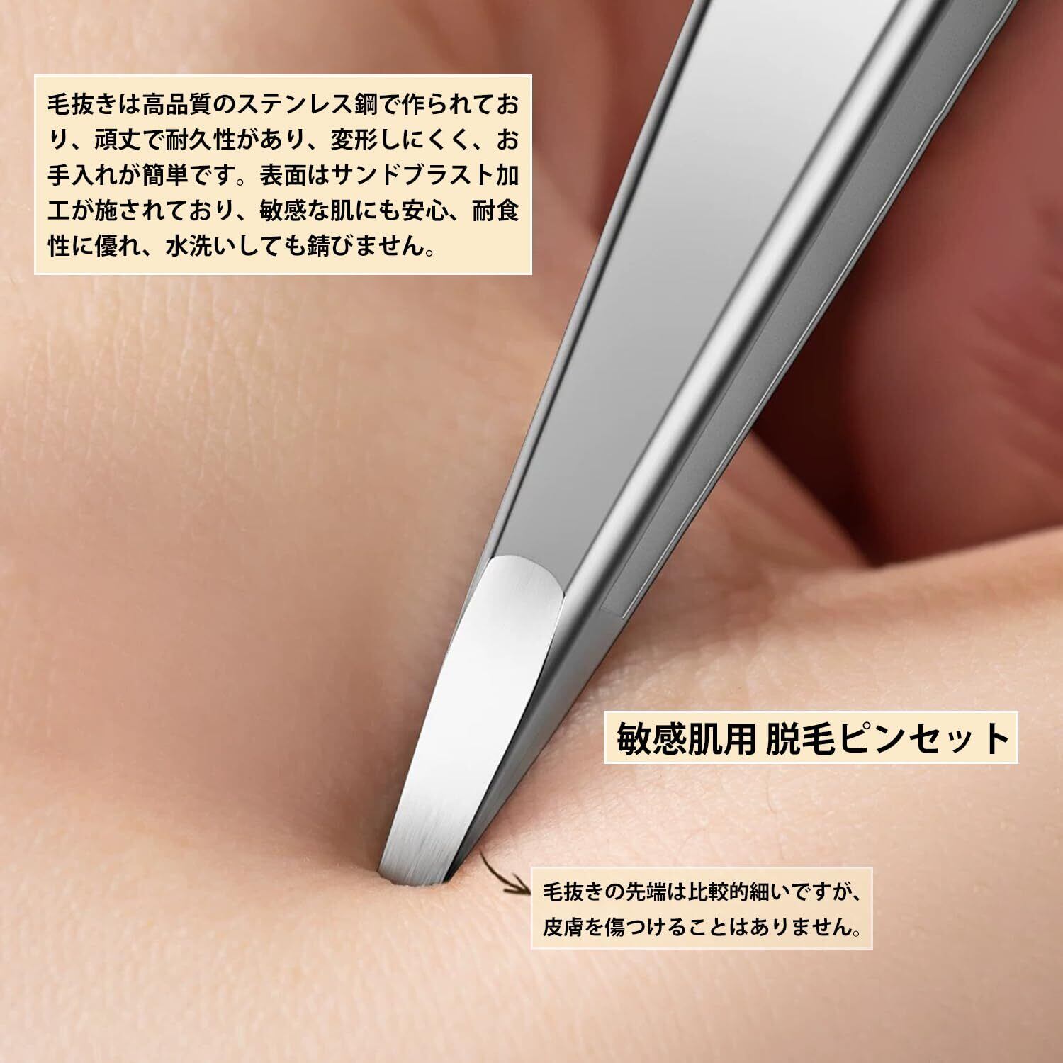 【敏感肌用 脱毛ピンセット】:AioBos 毛抜きは高品質のステンレス鋼で作られており、頑丈で耐久性があり、変形しにくく、お手入れが簡単です。表面はサンドブラスト加工が施されており、敏感な肌にも安心、耐食性に優れ、水洗いしても錆びません。ピンセットは、その優れた品質により、毛を抜くのプロの間で第一の選択肢となっています。