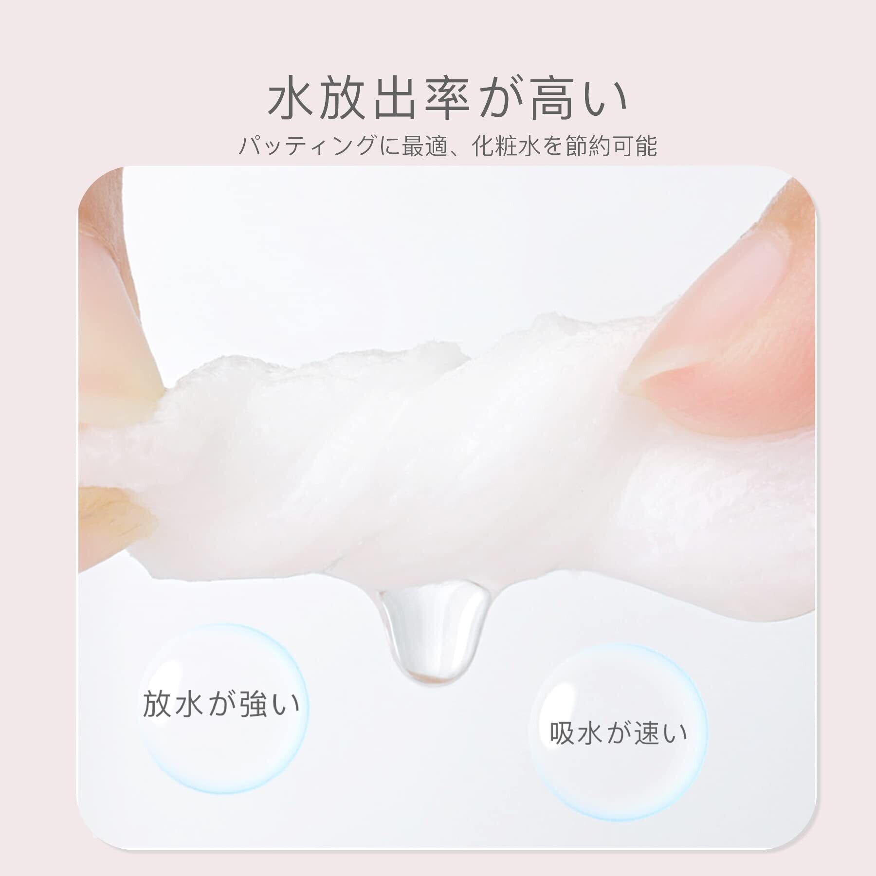 【優れた保水放水力】薄手で、うるおいやすく、しみ込んだ化粧水をほとんど残さず肌に届け、優れた保水放水 力を実現します。また、ふんわりと柔らかく、肌に貼り付けやすく、ずれ落ちしたり、よれしたりすることはなく、化粧 水も無駄にせず、スムーズにスキンケアできます。