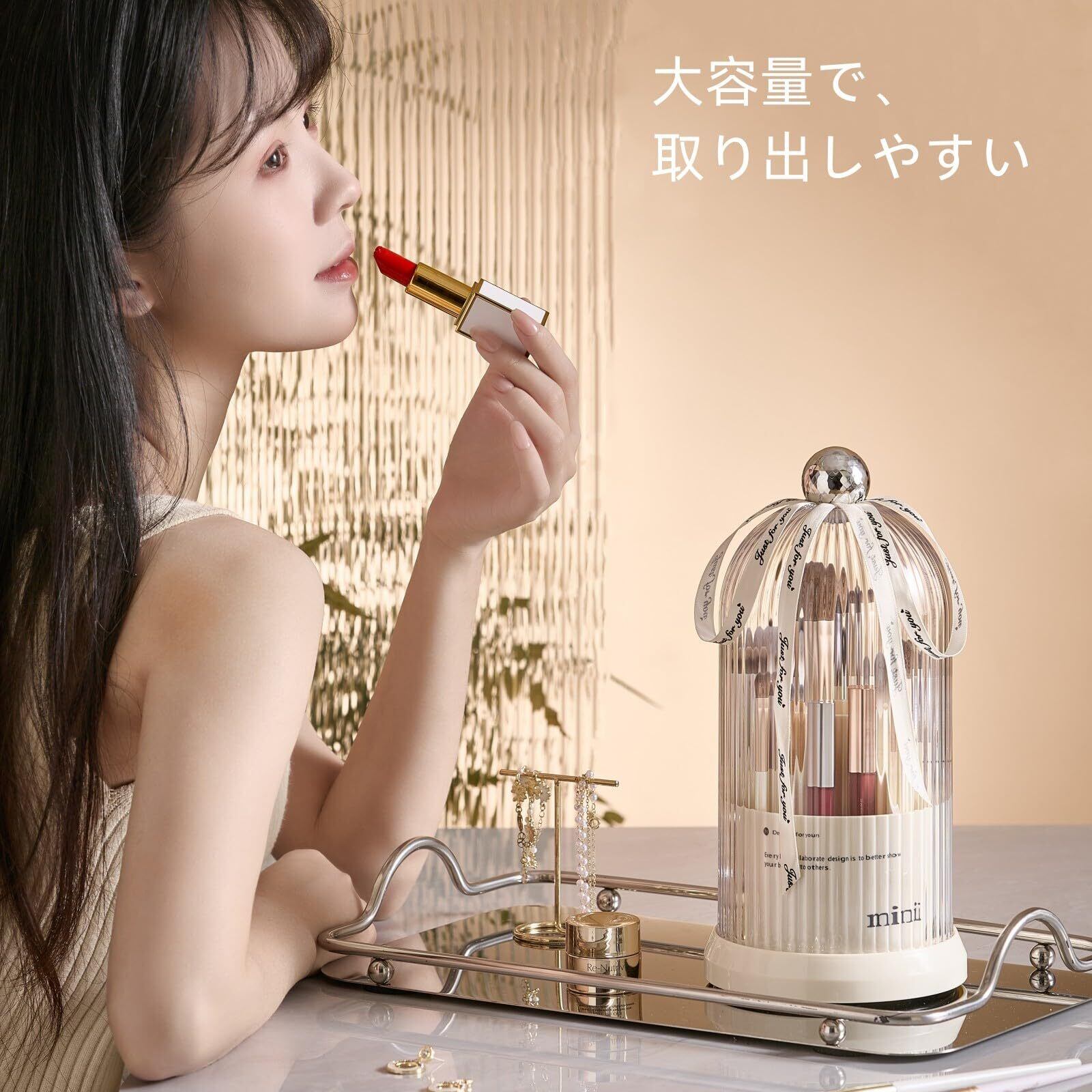 メイクブラシケース 蓋付き コスメ収納 360°回転 化粧品収納ボックス 防水防塵 メイクブラシ 収納 透明 メイクブラシスタンド VOLPONE