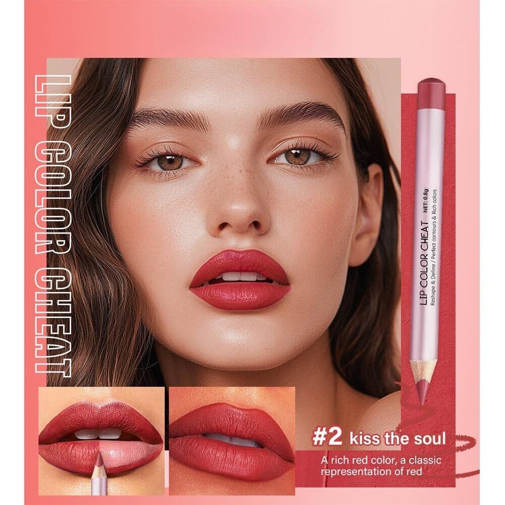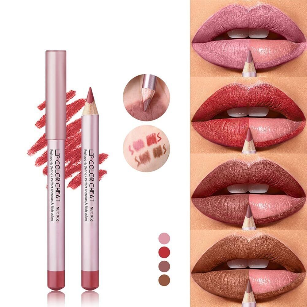 [2025年最新] 木杆リップライナー 4色|ナチュラル仕上げ|24時間保湿|マット&グロス両用|メイク初心者にもおすすめ|防水タイプ、長持ち、マット、リップコントゥアリング、口紅、リップライナー(#2)