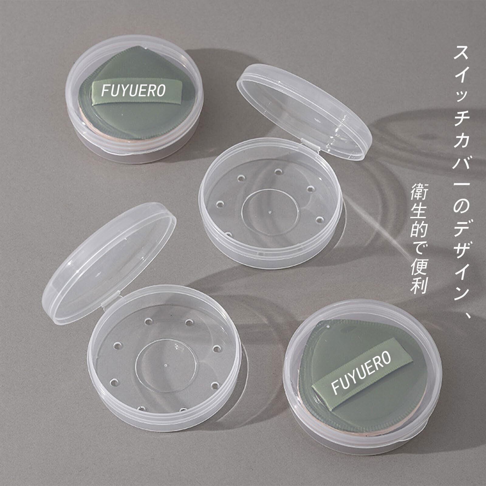 FUYUERO パフケース 2ラウンドメイクアップパフ保護容器 美容パウダーパフキャリングケース 収納 通気性 透明 パウダーパフ 化粧スポンジ ボックス メーク用品 防塵 携帯用 日常や旅行用 (直径6.2cm)
