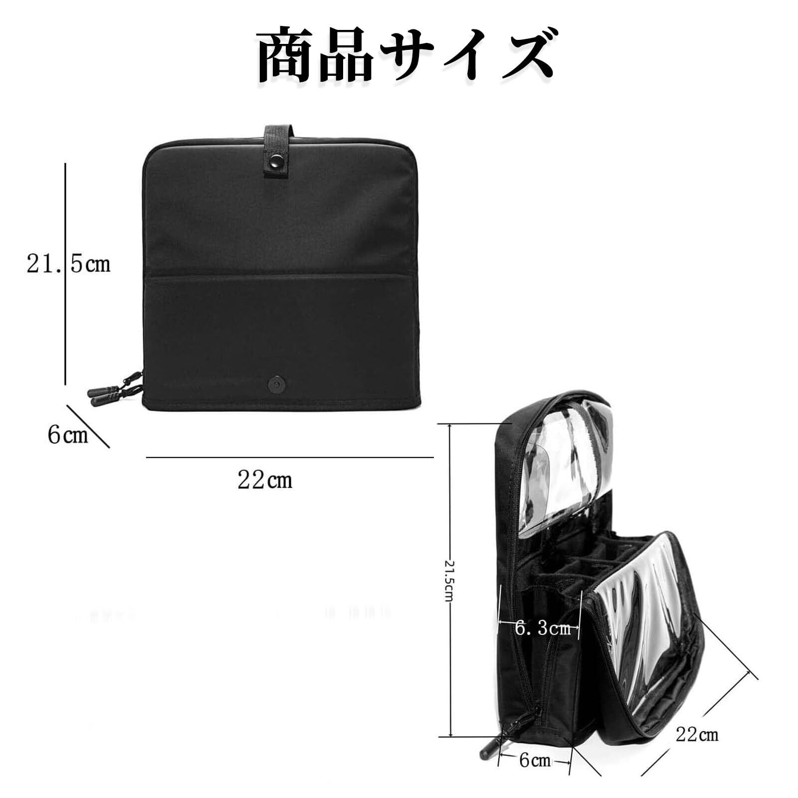 YINKE メイクブラシ収納ポーチ メイクブラシケース プロ 化粧筆入れ 化粧ポーチ 自立 仕切り板調節可能 大容量 旅行 携帯便利 透明カバー 蓋つき 80本以上入れ可能 お手入れしやすい プロ仕様 美容師収納(黒)