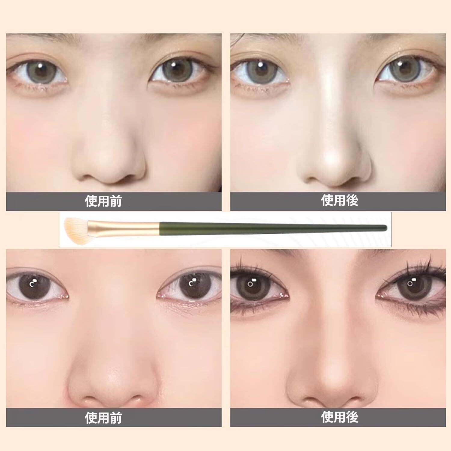 【扇型ノーズシャドウブラシ】扇型デザインを採用したノーズシャドウブラシセットは、眼窩にぴったりフィットし、立体的な鼻を素早くメイクできます。ブレンド効果が汚く見えず、ノーズシャドウ効果がより自然になります。 専門家にも初心者にも適しています。