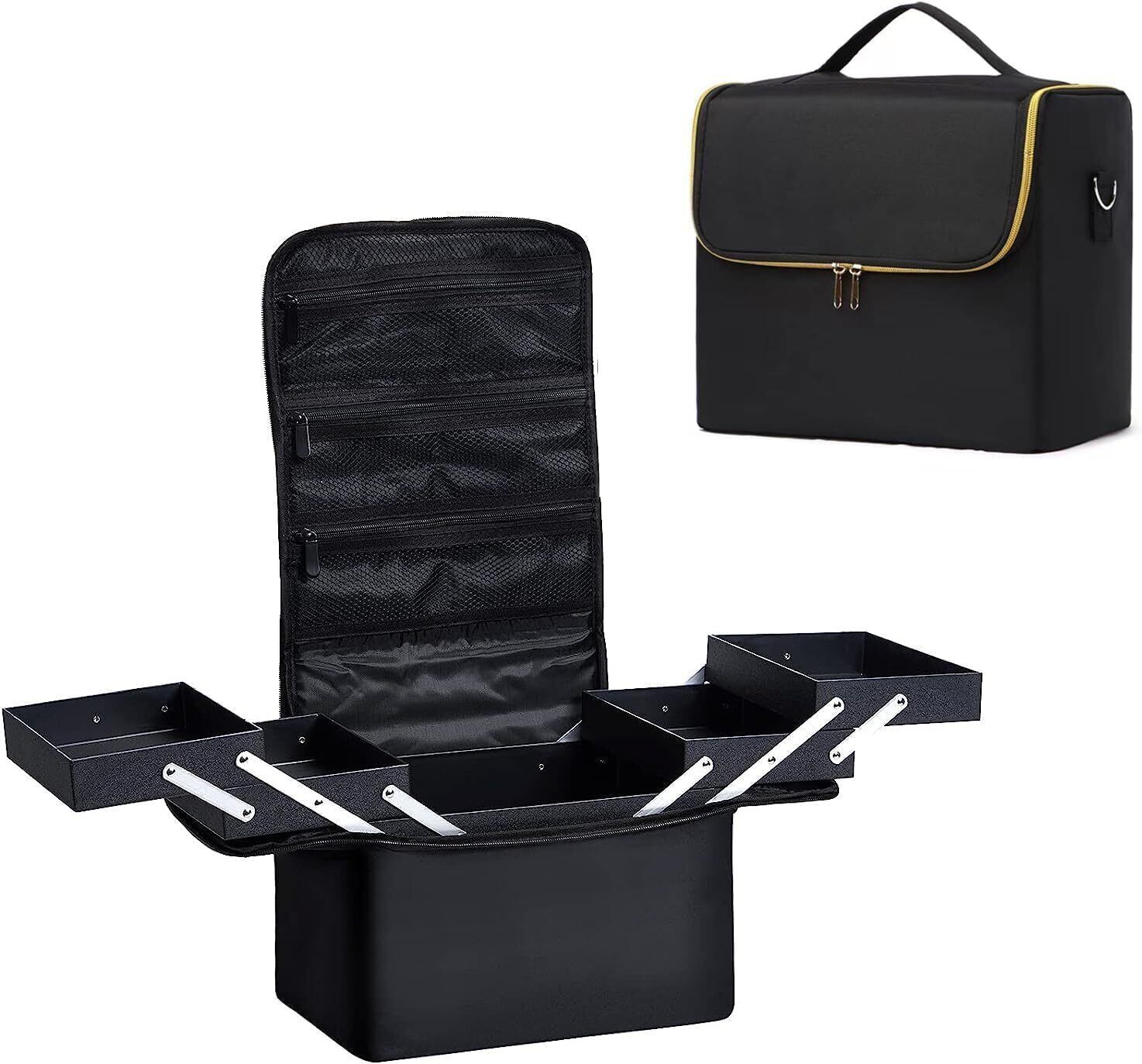 "防水, トレイは硬めの素材で衝撃から守りやすい, 軽量, ハンドルが付きで持ち運びやすい, 伸縮トレイ, 4つトレイ, お手入れが簡単、汚れてもサッと拭き取れる, 両開ファスナー, ショルダー付きで斜め掛けできます, 3つメッシュポケット。高級防水材を採用しております、耐皺性がよいです。 SBSダブルジッパーのデザインで270°開閉でき、開け閉めがし易いです。 軽い素材を採用し、メイク道具の安全を確保し、化粧品の重さを増やしません。 ワイドな下段と4つのスライドトレイでコスメ道具をすべて入れてまとめて収納します。 ファスナー付きメッシュポケットが3つ搭載されます。 "