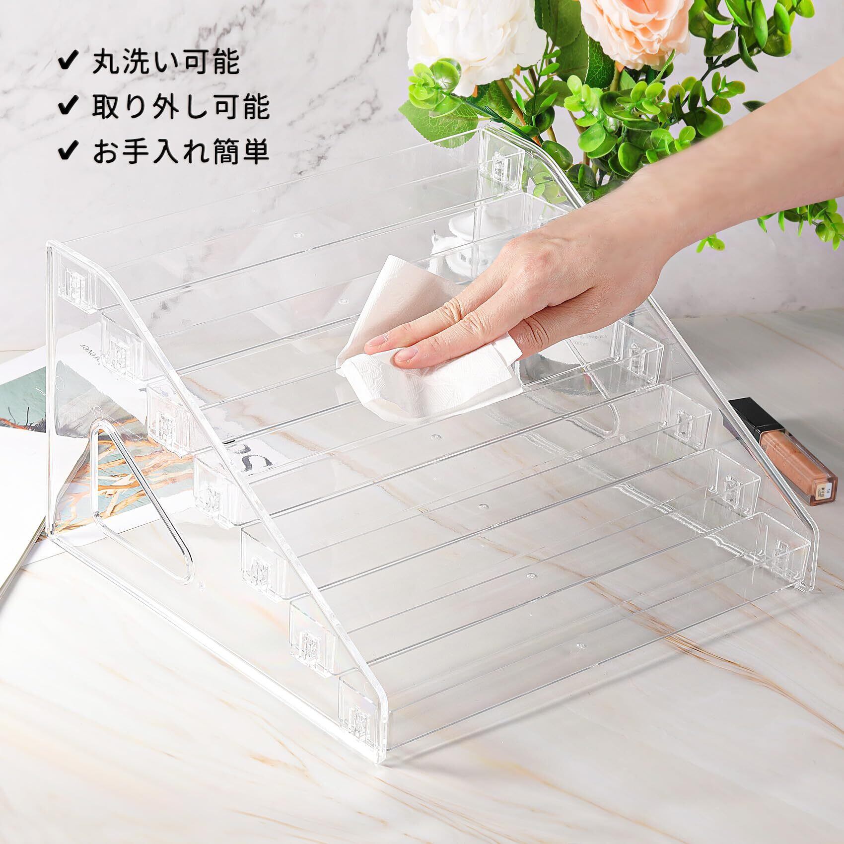 お手入れ簡単:ネイル収納ケースは丈夫で軽量なアクリル素材を採用しているため、耐久性があり、洗いやすい特徴があります。汚れがついた場合も簡単に清潔に保つことができます。