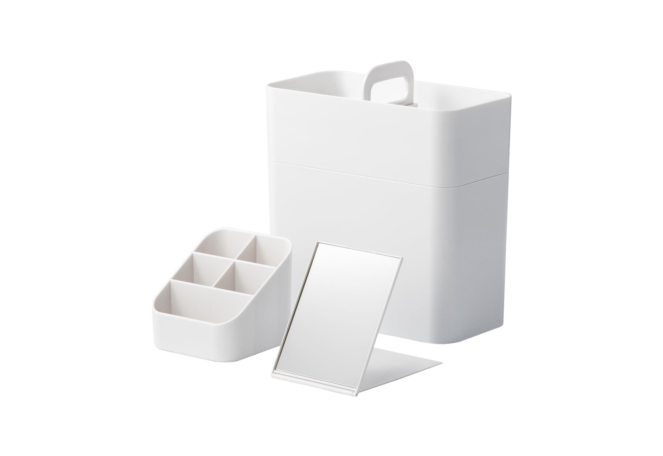 ライクイット (like-it) 収納ケース 洗面でも使いやすい メイクボックス 鏡付き 約幅11x奥21x高23cm ホワイト 日本製 コンパクト 持ち運びできる 幅11㎝ 鏡付き 時短メイク