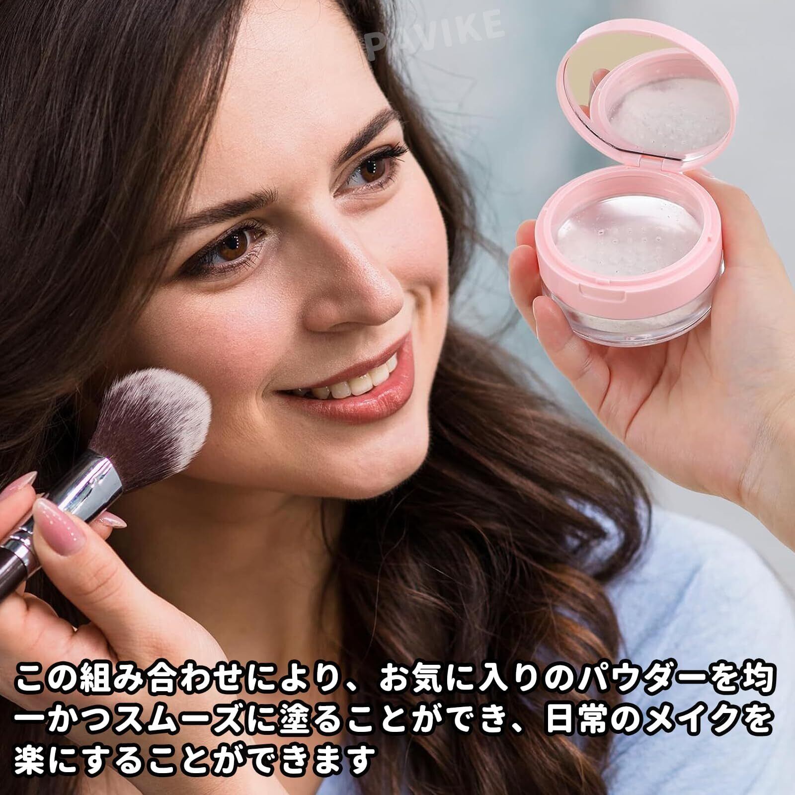 PAVIKE パウダーケース 鏡付き パフ付き 10g 携帯用 詰め替え メイク道具 ルースケース ルースパウダーケース フェイスパウダーケース ルースパウダー容器 弾性メッシュ