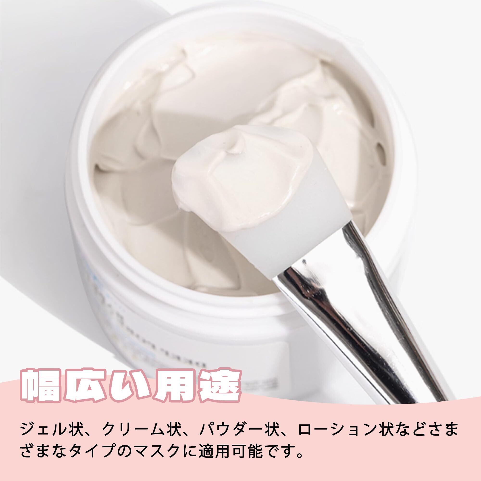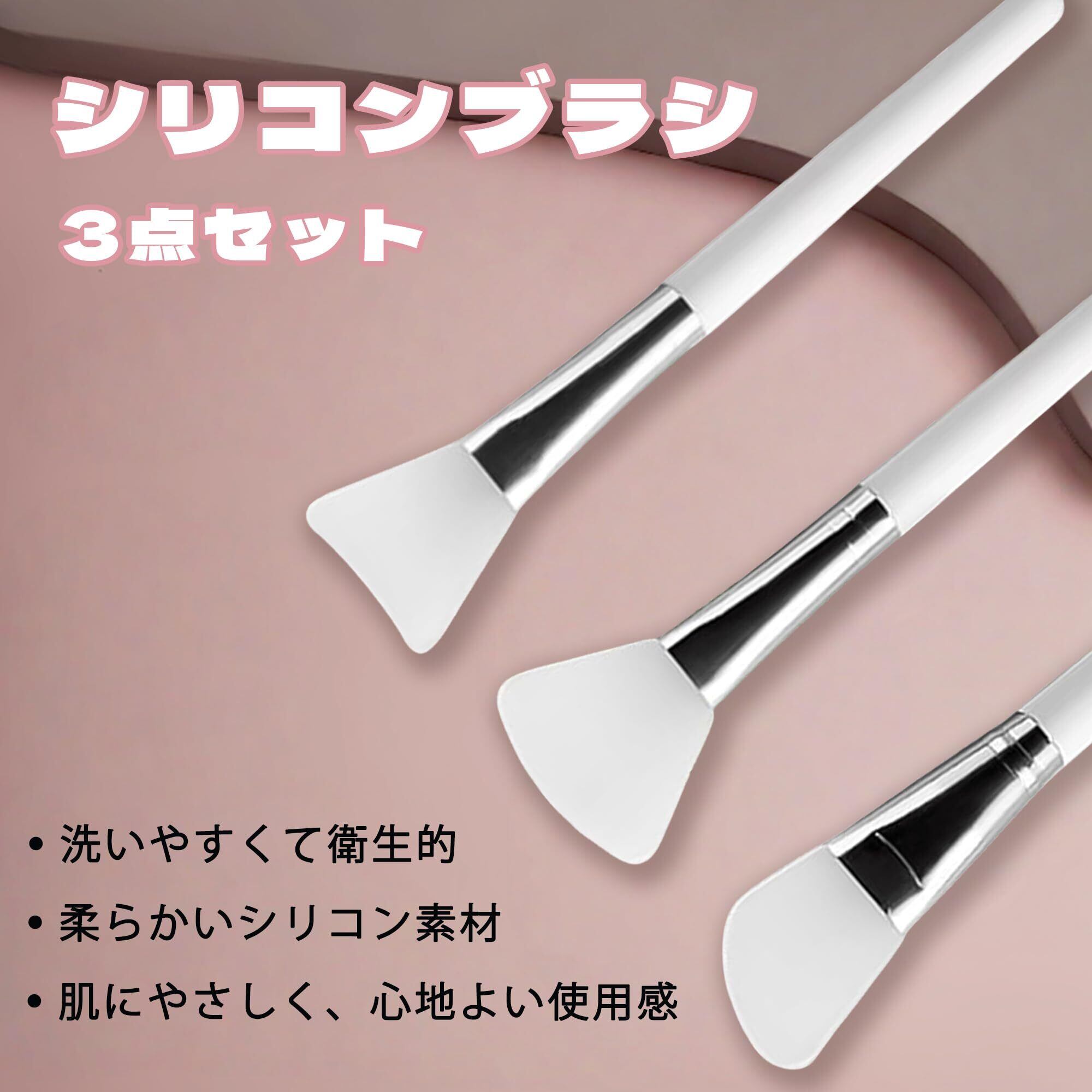 【製品詳細】シリコンブラシセットは、30mm幅の超長刃型ブラシ(広範囲をカバー)+32mm幅のスクエア型ブラシ(ペーストを均一に伸ばす)+38cm幅のカーブした扇形ブラシ(輪郭にフィット)の3種類のブラシが付属。Tゾーン、小鼻、顎ラインなど塗りにくい部分もムラなく簡単に塗布できます。