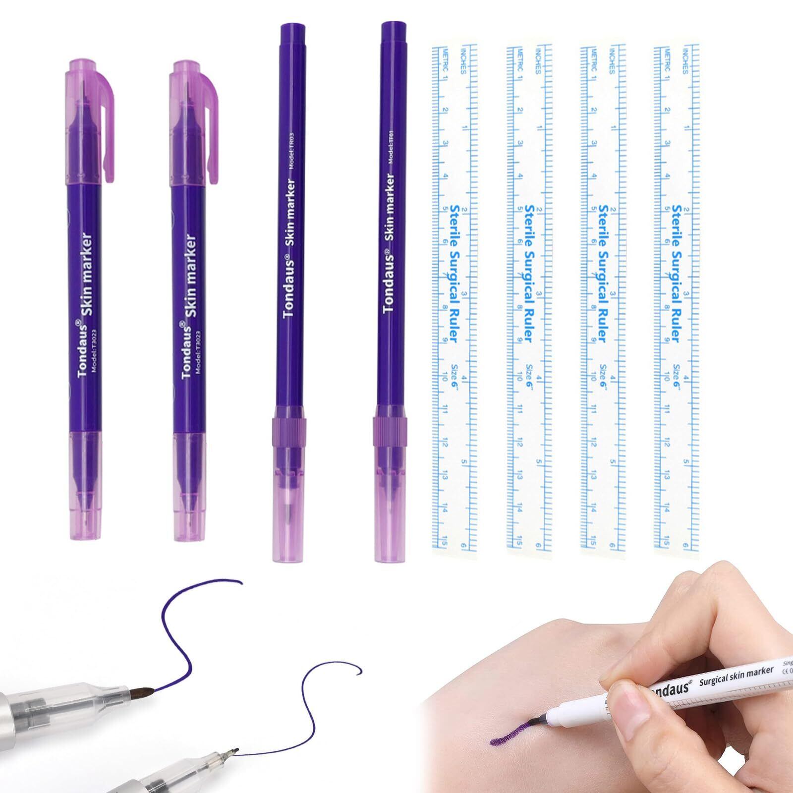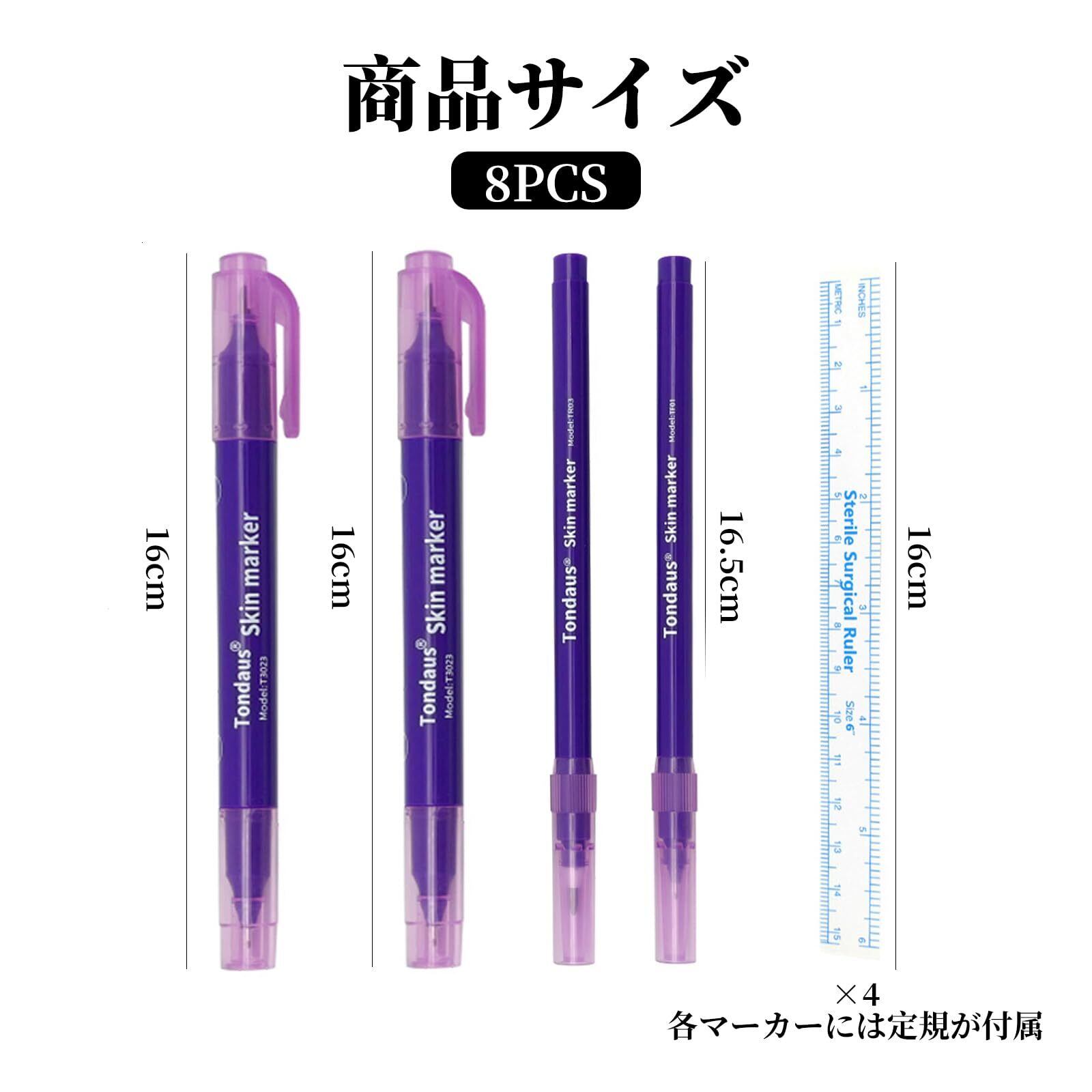 Doyeemei スキンマーカーペン タトゥーペン 4個入 0.5mm-1mm ペン先 眉毛 ルーラー 位置決め マーカー タトゥー サロン用 眉毛外科スキンマーカー 全プロフェッショナルアートメイクタトゥー用品