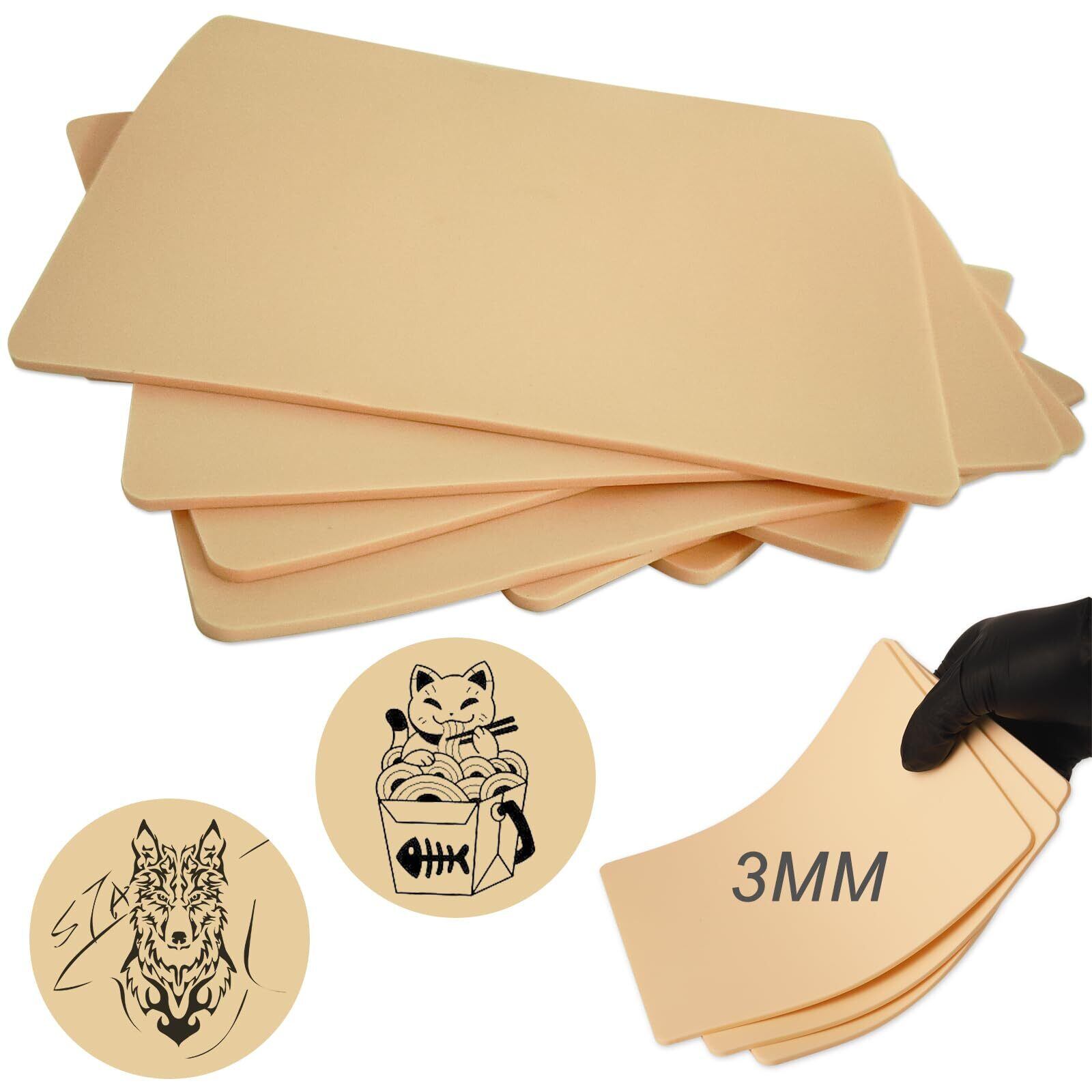 3MMフェイクスキンタトゥー - TONBAO 8個入り 厚手タトゥースキン練習キット 7.48x5.6インチ 両面フェイクスキン 練習とタトゥー用 初心者とアーティスト向け 3mmソフトフェイクタトゥースキン練習用