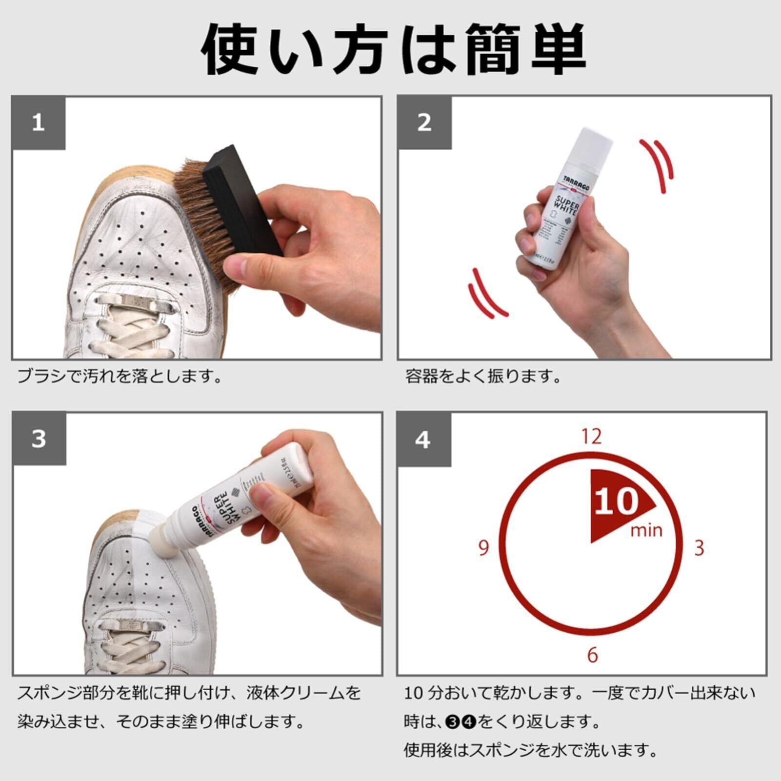 [Tarrago] スニーカー 白さ復活 スーパーホワイト 靴クリーム 白 リキッド 傷 汚れ ソール ミッドソール 黄ばみ落とし 黒ずみ 着色 塗装 補修 ホワイトナー ホワイトニング クリーナー 革 合皮 ゴム 75ml
