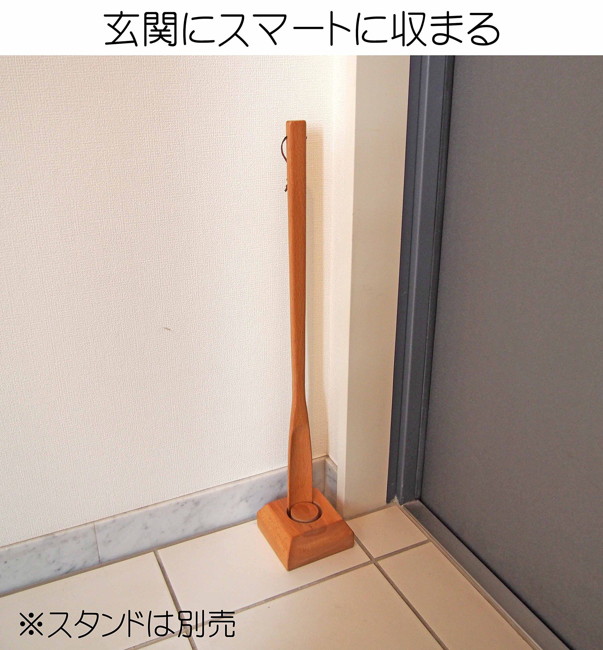 美しい木目を活かし、クリアコーティングしたブナ木を使用した靴べら。程よい長さ64cmで屈まず靴を履ける。約130gと軽量で使いやすい。