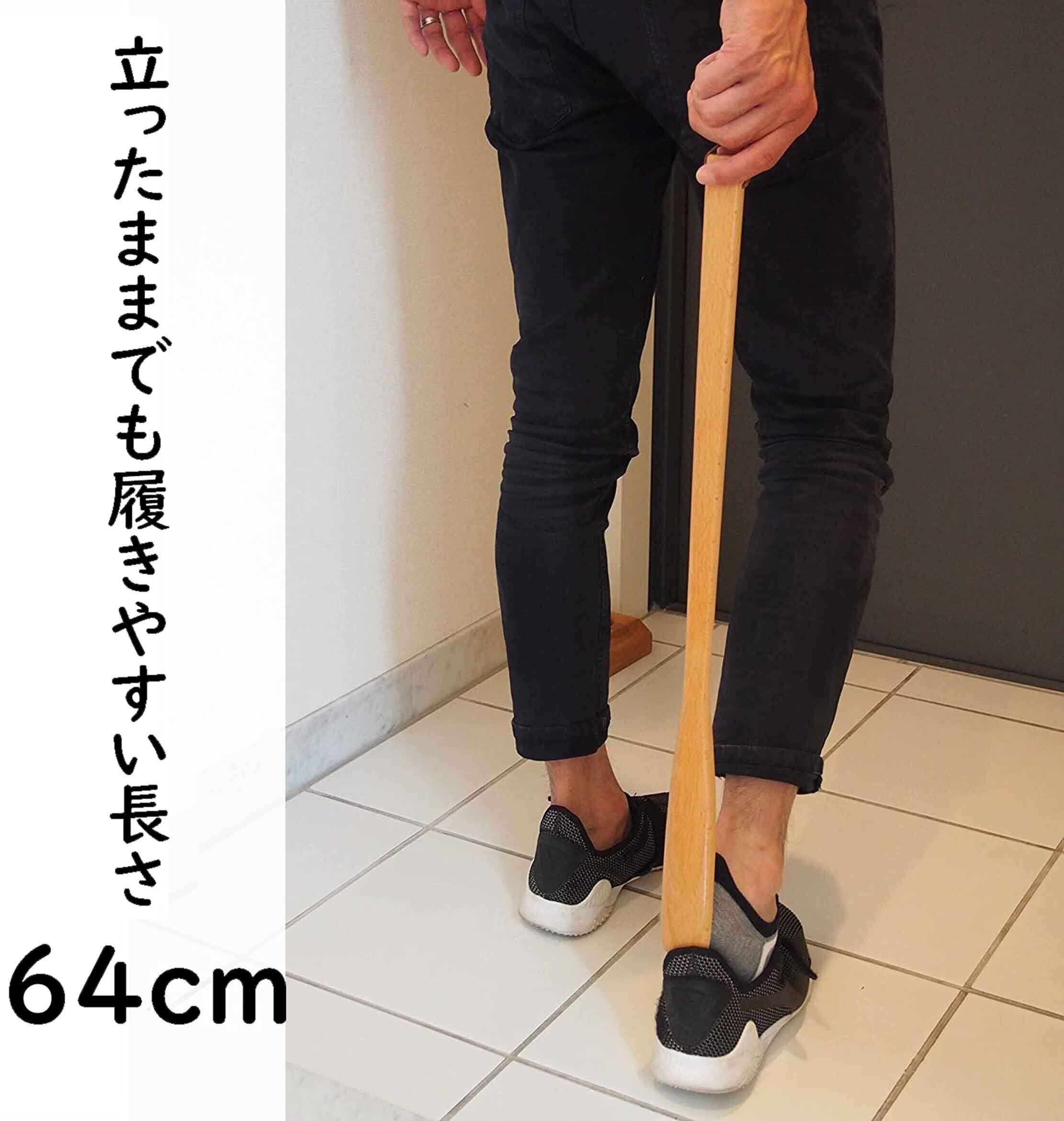 近藤 靴べら 木製 おしゃれ 天然木 ブナ材 ロング 64cm 吊り下げ 安定 横ループ 仕様