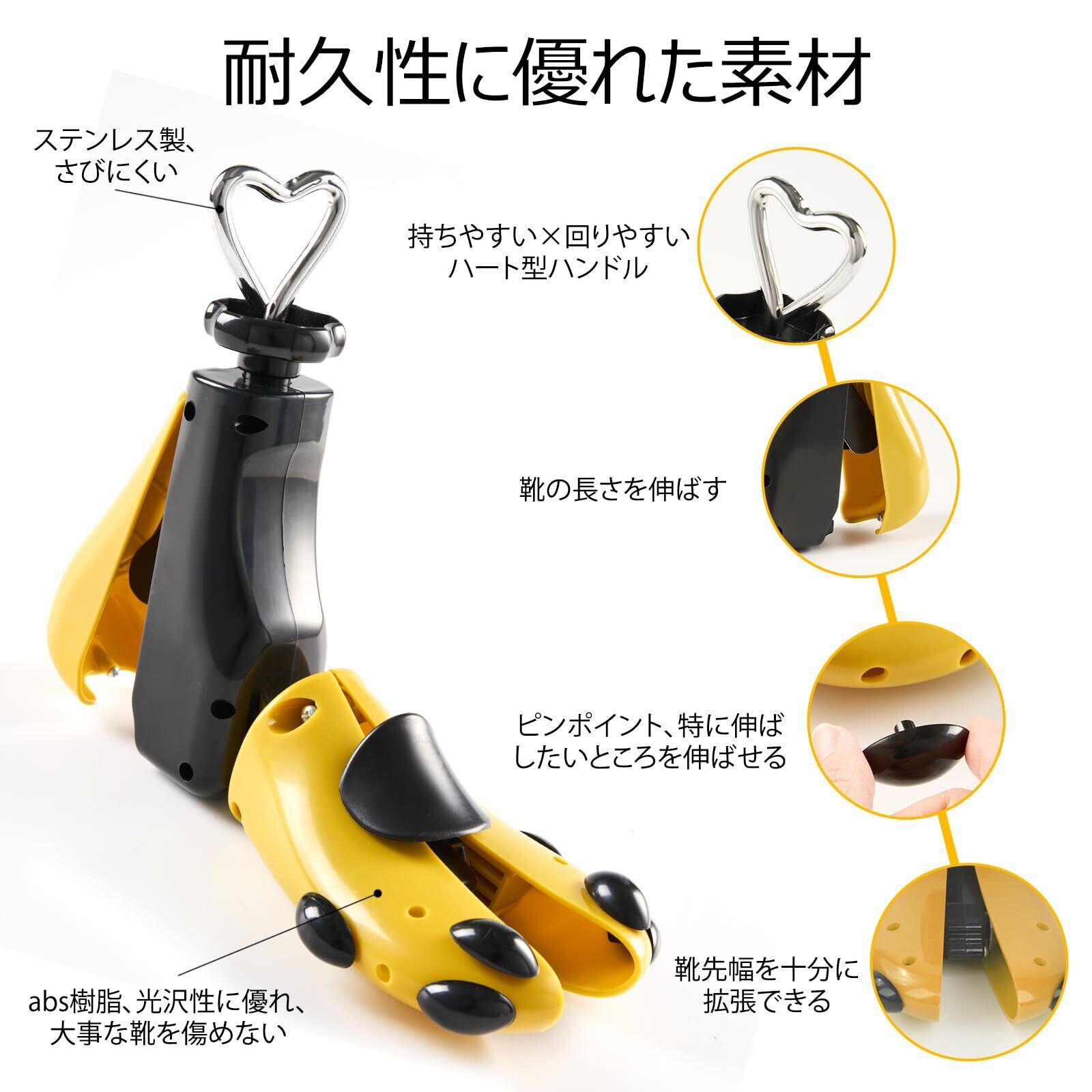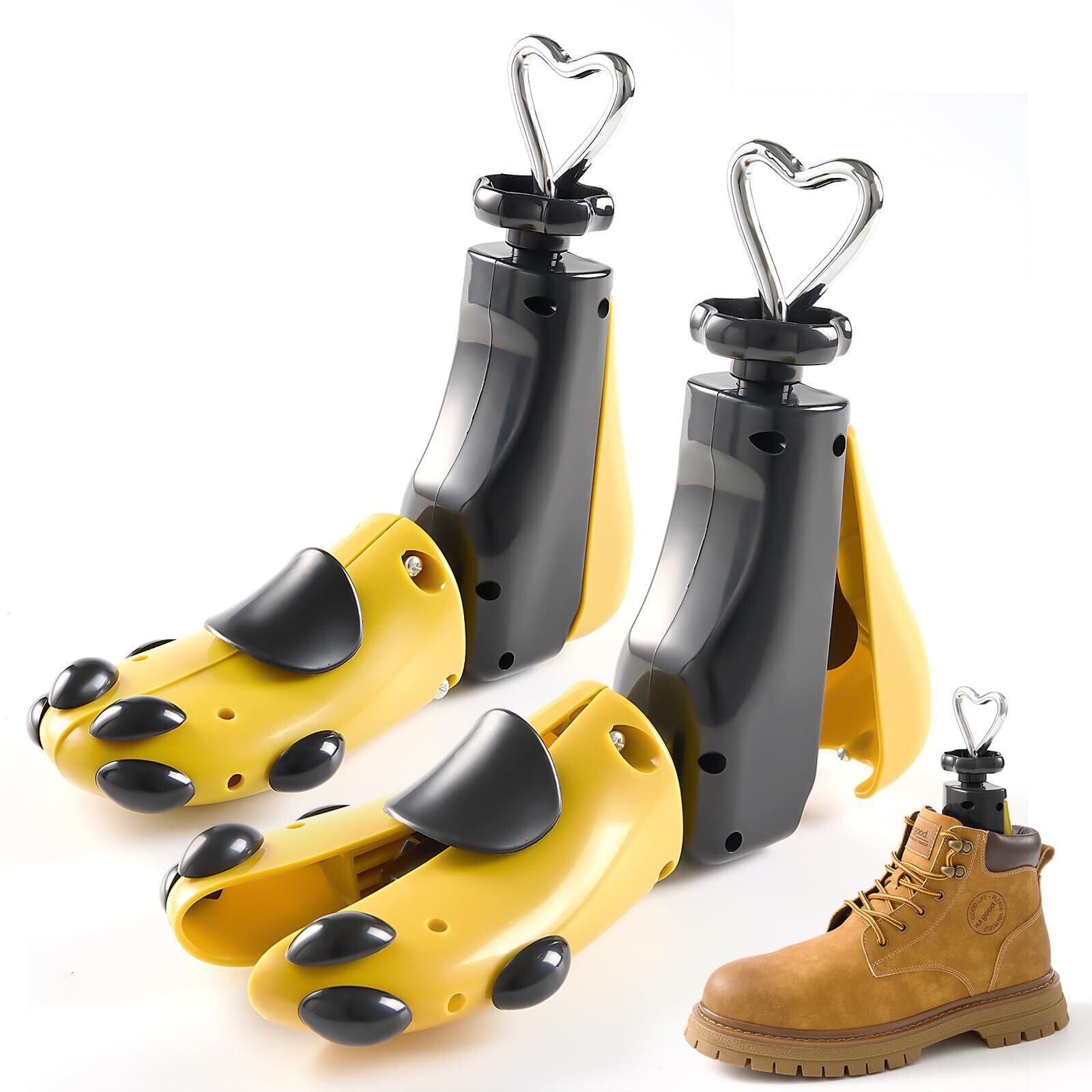 【横幅、縦幅、甲高を伸ばす】ブーツ用に対した強化、かかとやつま先がイタイっ、キツイっなどの悩みで困っている方は、このシューズストレッチャーを使えば安心できます!簡単に扱い可能、靴の縦幅、つま先幅、甲高を自由自在に調整し伸ばすことができ、自分の足にフィットしたサイズに整えます。