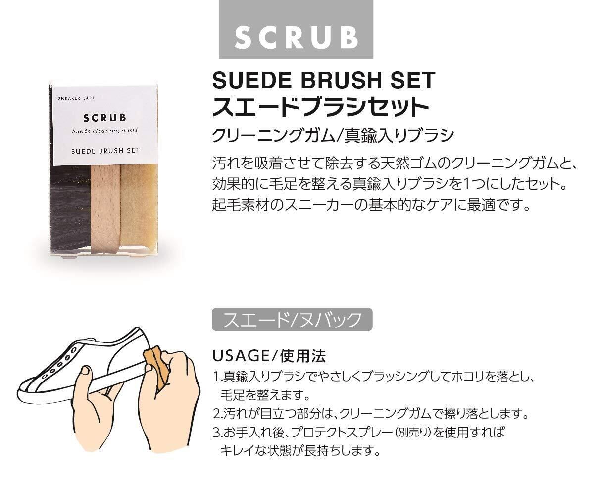 ヌバック、スエード(起毛素材)専用のクリーナーとブラシが付いたセットです。