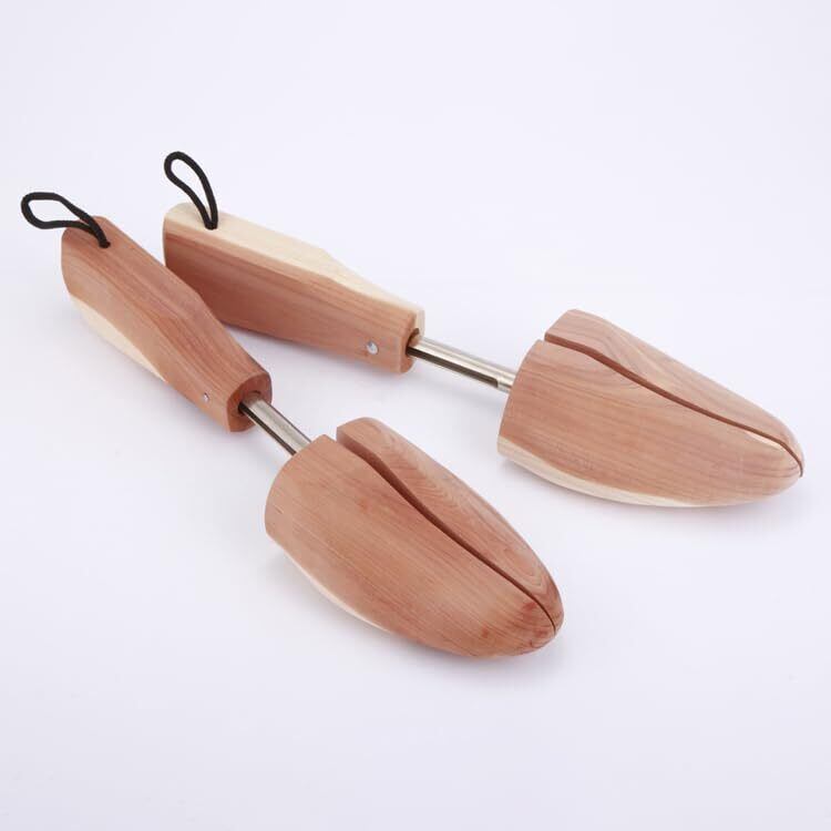 アロマティックシーダー(芳香西洋杉)シュートゥリーは、靴の履きジワを伸ばし、型崩れやソールの反り返りを防ぎます。