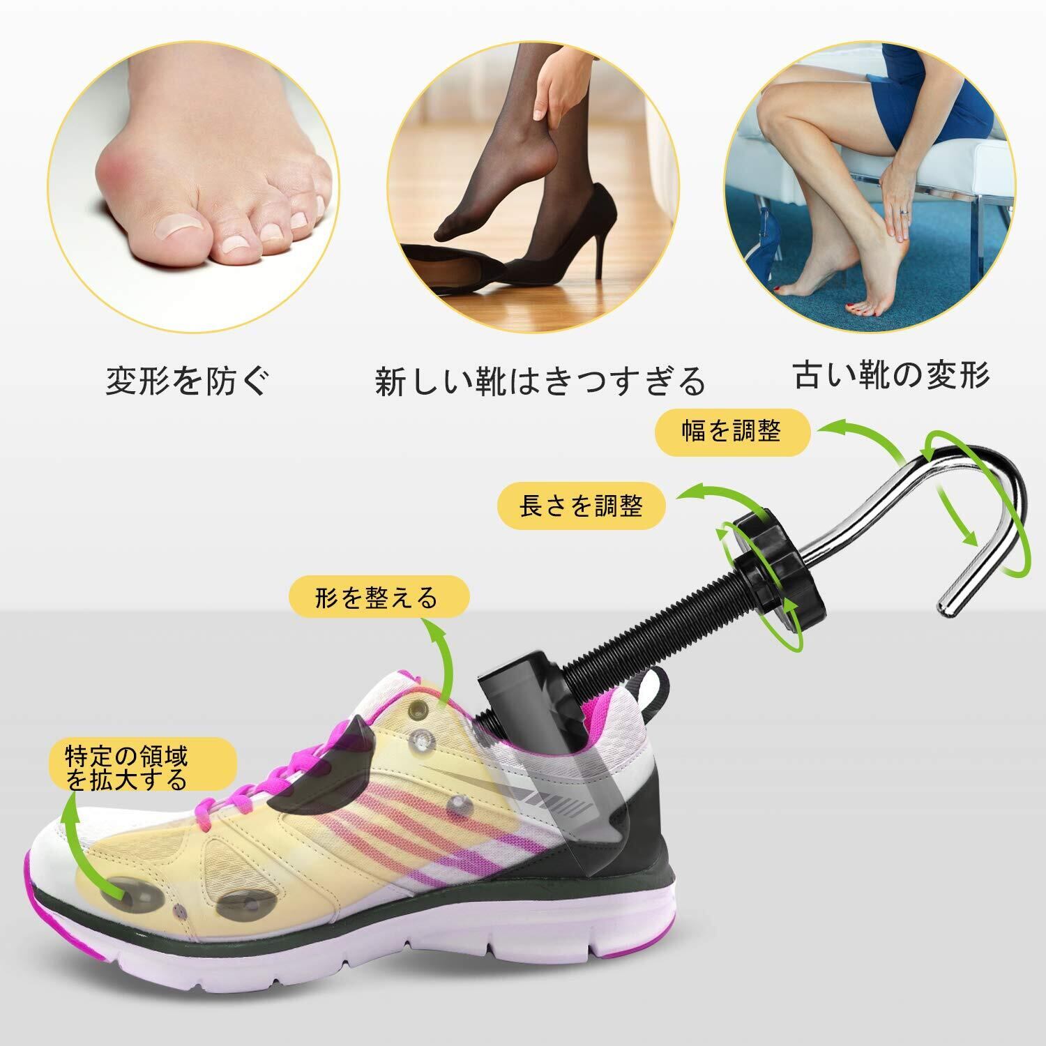 [eachway] シューズストレッチャー 靴サイズ調整 靴伸ばし プラスチック 靴擦れ 靴ズレ 携帯靴べら付 メンズ レディース 二個セット 左右兼用