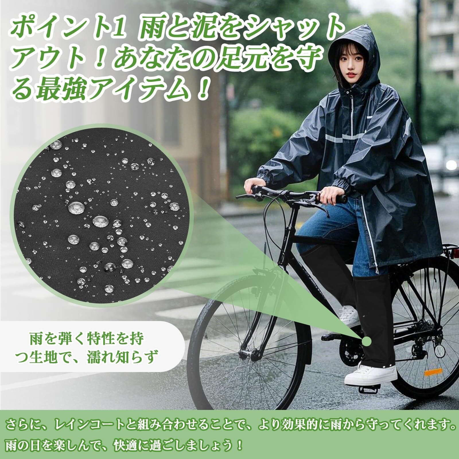 [BESPOTCL] レッグカバー 自転車 雨用 防水 足カバー 雨具 撥水 着脱簡単 フットカバー 雨 対策 泥はね防止 2箇所で調整可能 面ファスナー ボタン付き 梅雨や園芸作業に最適 通勤・通学にも便利 1足組