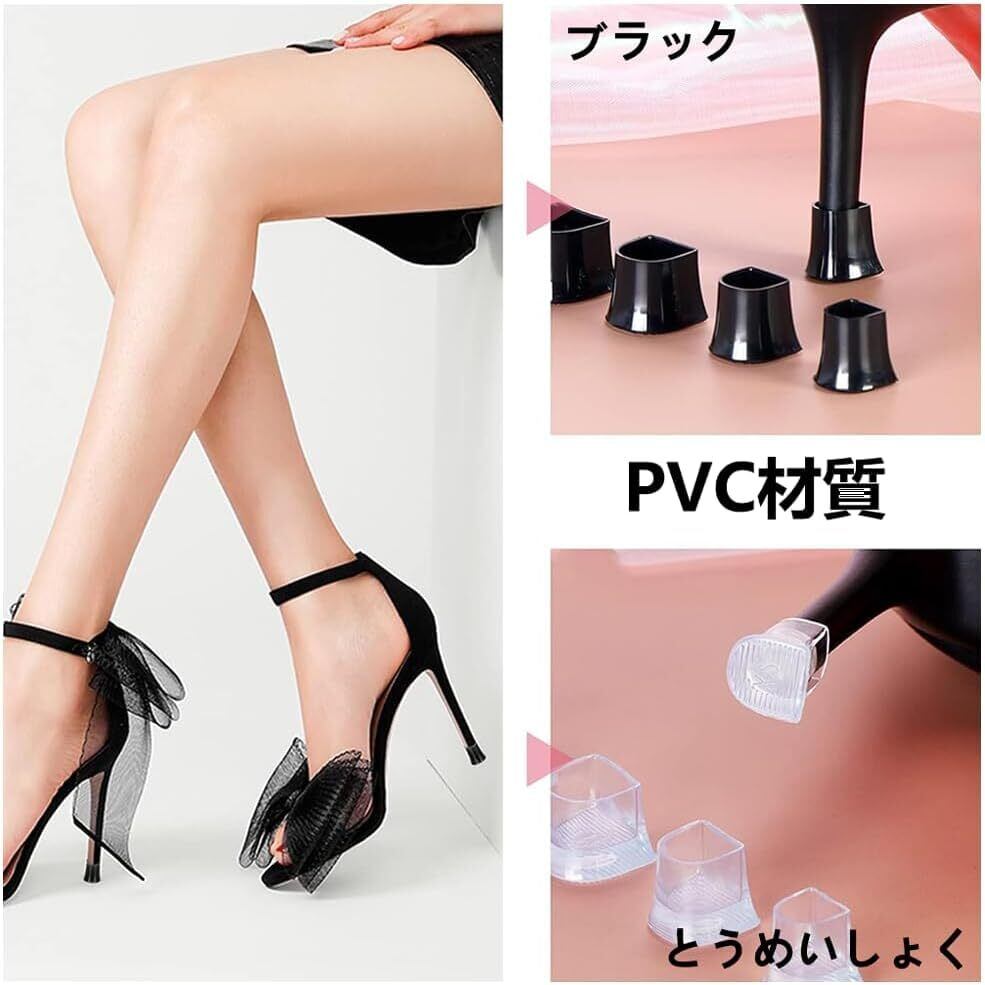【製品情報】名称:ハイヒールカバー。材質:PVC材質。色:黒、透明。内容:2色、5種類のサイズ(XX、XS、S、M、L)、サイズごとに1足ずつ、計10足。