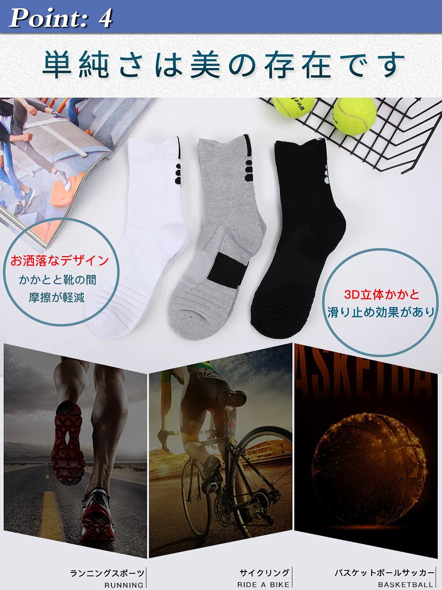 【商品仕様】6足セット、サイズ:24-28cm 。素材:90%の綿+10%ポリエステル。通気、吸湿、抗菌·防臭効果のおかげで長時間運動したり歩いたりしても臭いはありません、一日中快適に着用できます。ランニング、サッカー、バスケットボール、トレーニングなどのさまざまなスポーツに適しています。