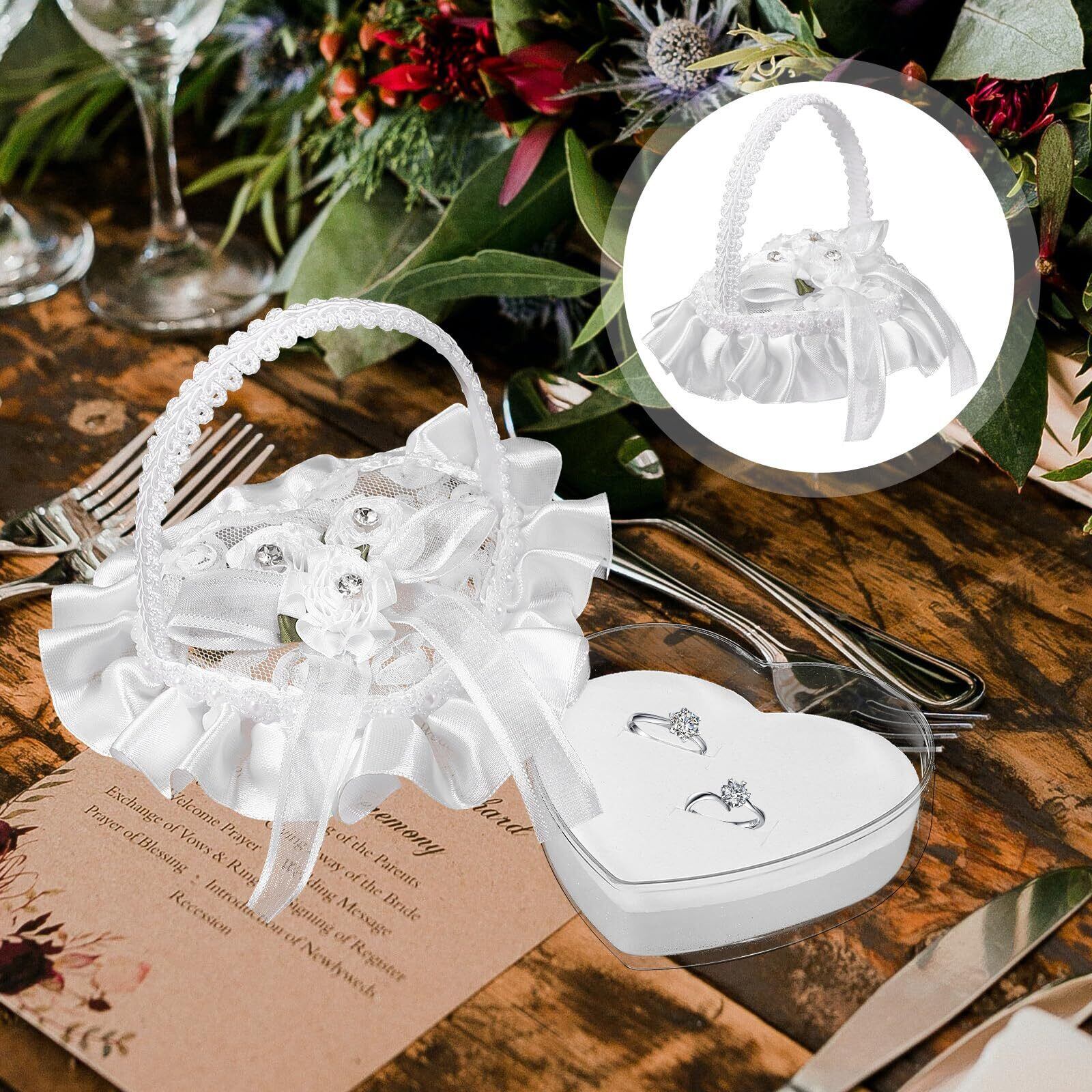 Healifty レースリングピロー パーソナライズされたリングピロー リングベアラーボックス ブライダルリングホルダー プロポーズ用のリングボックス ロマンチックなリングボックス リングピロークッ