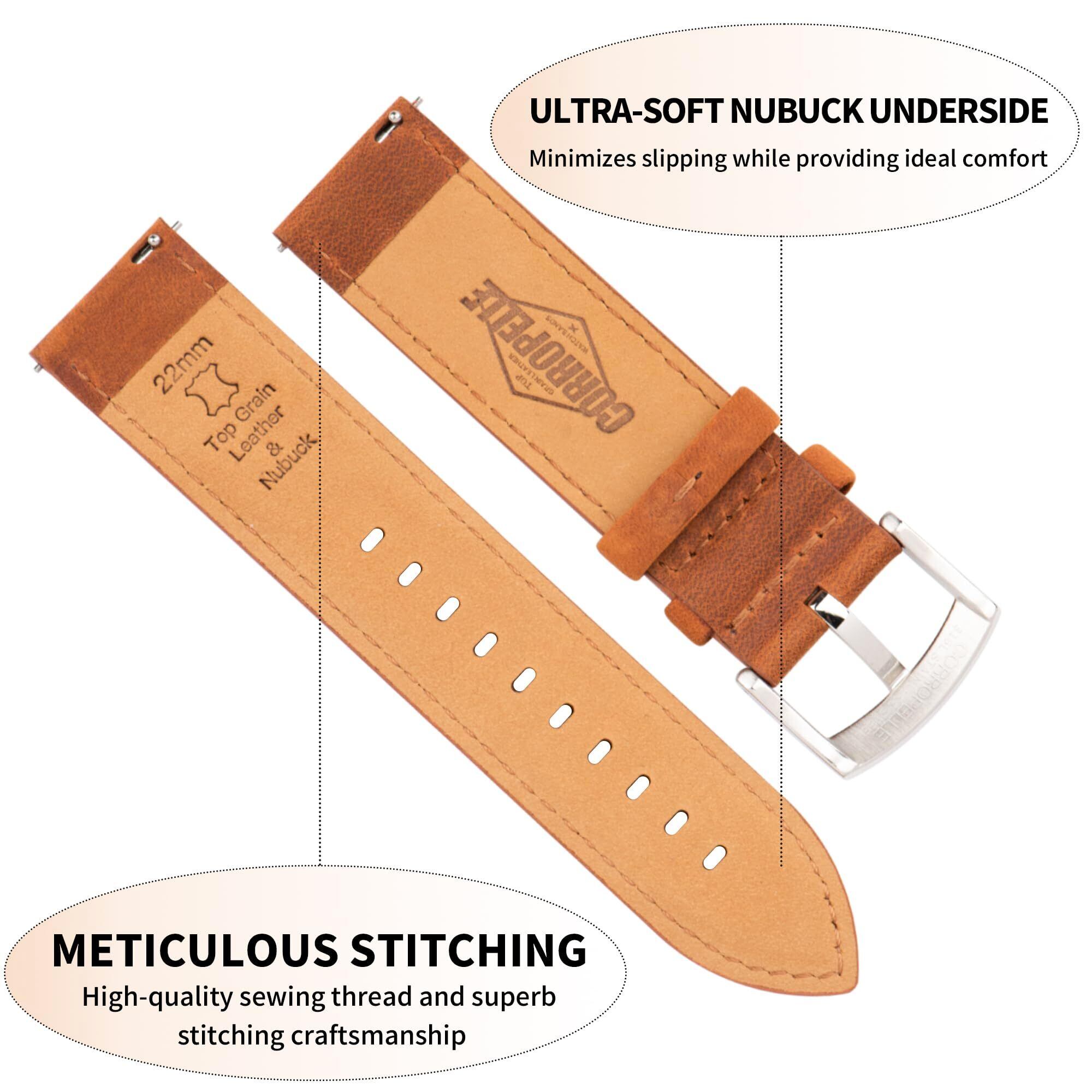 [CORROPELLE] 時計バンド 本革 時計ベルト クイックリリース 18mm 19mm 20mm 21mm 22mm 交換ベルト 工具は不要です レトロ エレガント クレイジーホースレザー 防汗 触覚の裏地 時計ベルト 男女兼用