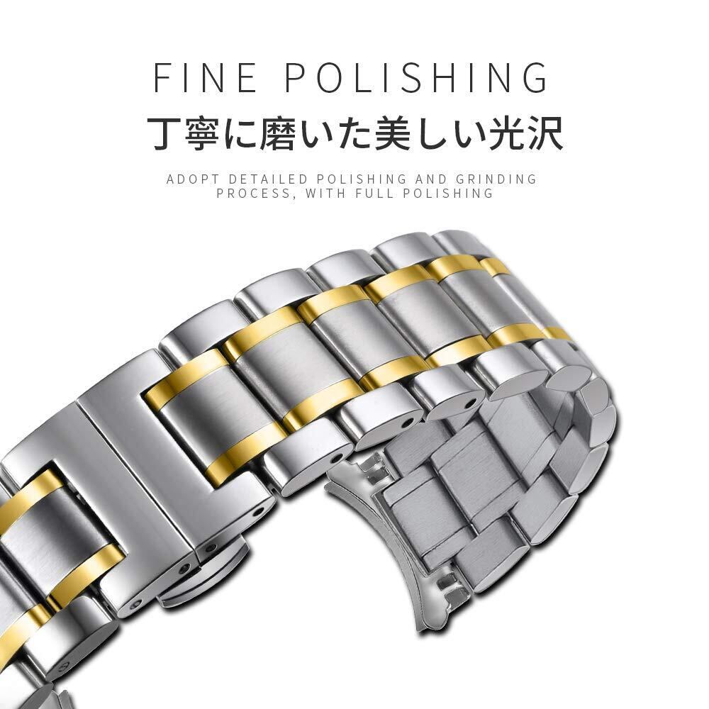 【優れた耐久性】ステンレススチールで作られて、爽やかな装着感が様々なスマートウォッチをサポートする完全防水タイプ時計ベルトです。ステンレススチールは本革と違って、汗がベルトに浸透しないので、非常に耐久性。