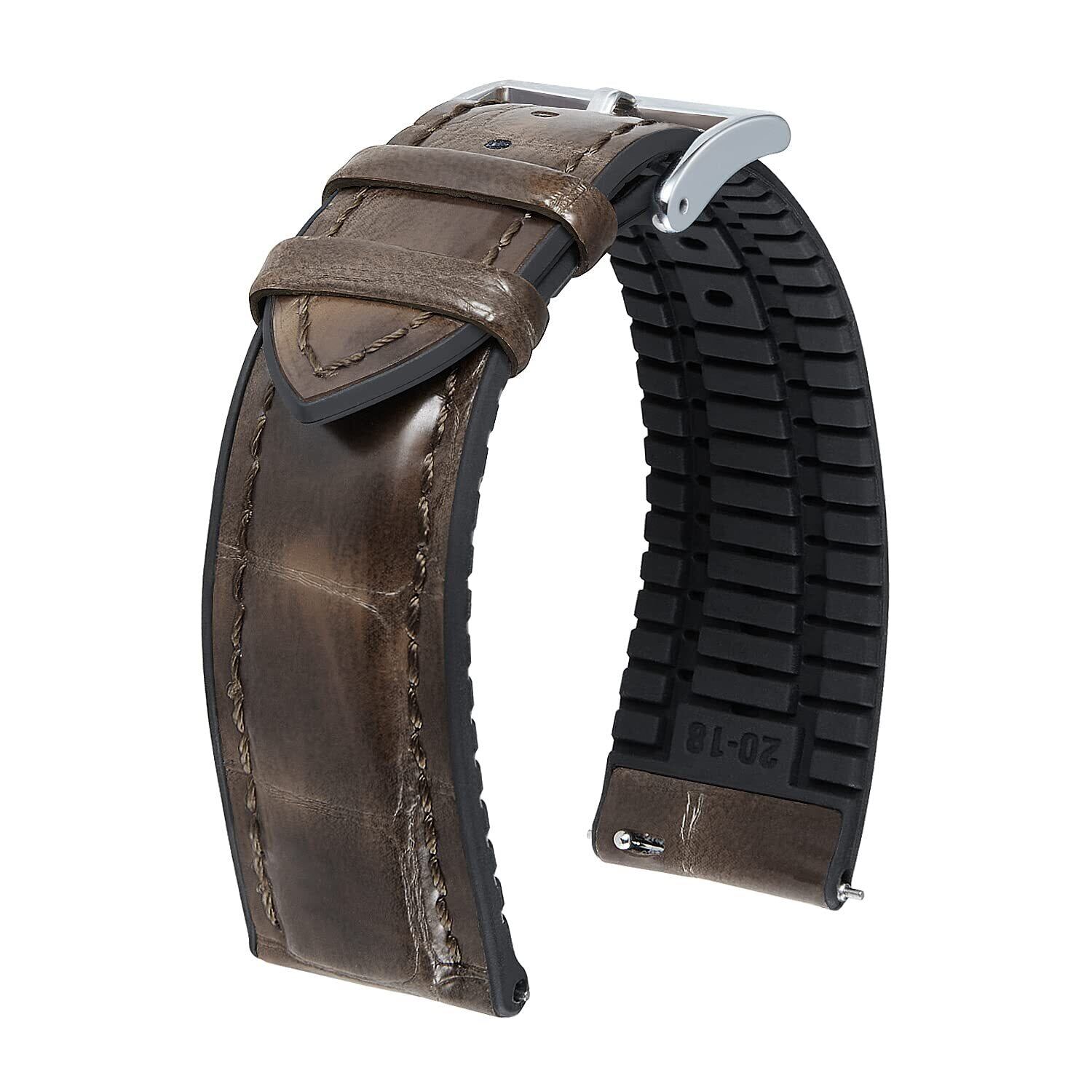 [BINLUN] 革時計ベルト クイックリリース レザー腕時計バンド ワニ革模様ウォッチバンド 内側シリコン製 通気性 交換ベルト メンズ レディース 20mm(ブラウン/シルバー バックル)