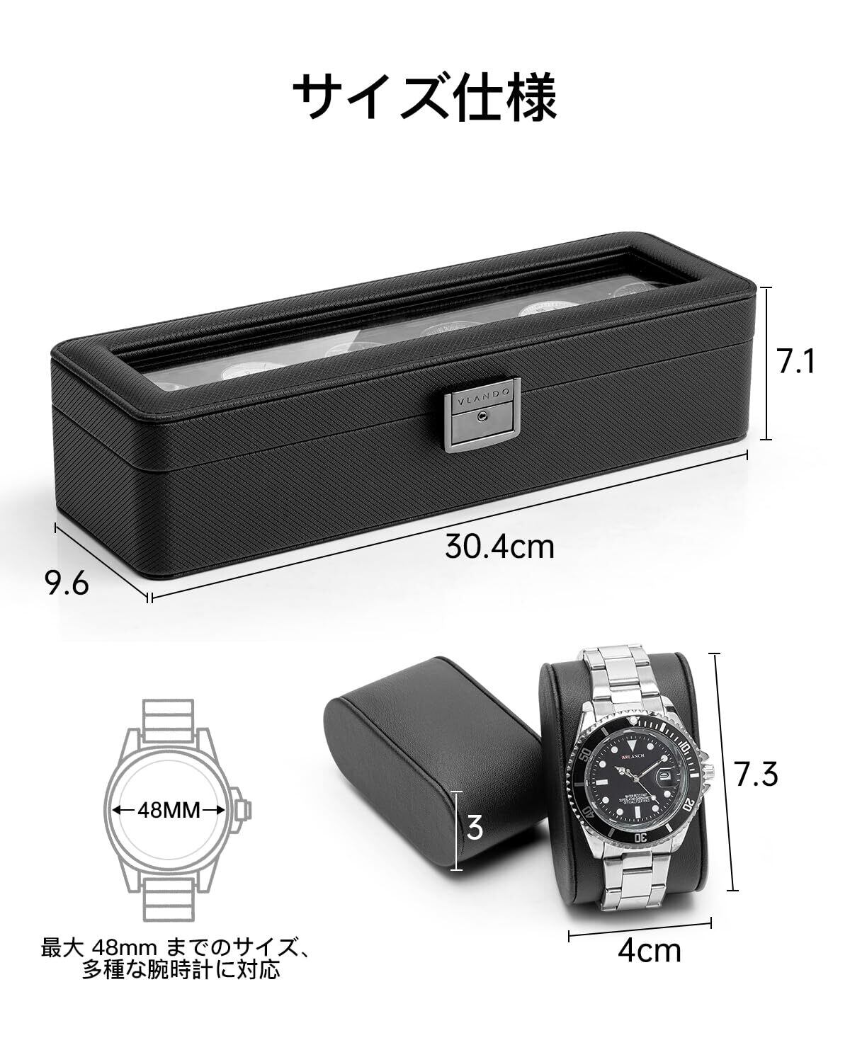 6スロット大容量 - 腕時計ケースは、ダイヤルサイズが最大55mmのあなたの腕時計をすべて一か所に便利に置けます。それで、正しいものを簡単に見つけることができます。大きな腕時計を保管するには最適です。