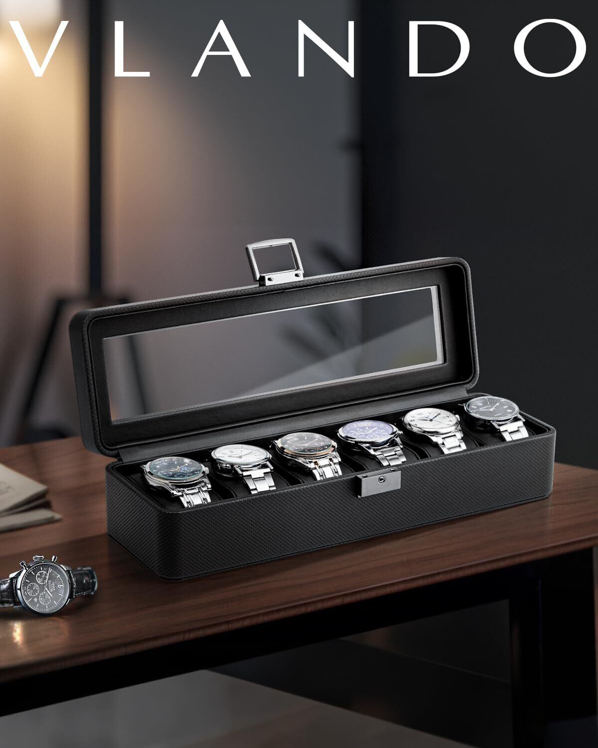 Vlando 腕時計ケース PU製 男性 収納ボックス アクセサリーケース アクセサリー 収納 誕生日プレゼント(ブラック, 6本用)