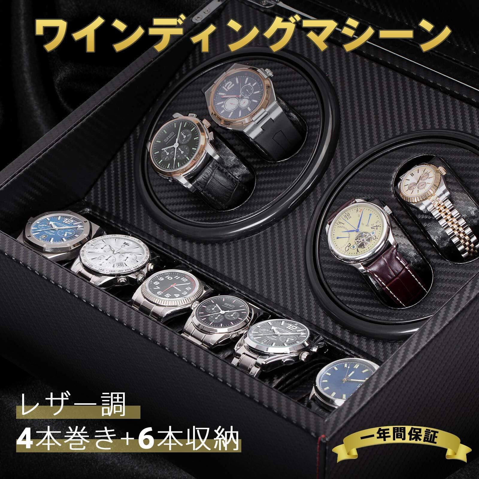 ワインディングマシーン ウォッチワインダー 自動巻き上げ機 時計収納ケース 腕時計ケース 日本製マブチモーター 設計 男女の腕時計兼用 (4本巻き+6本収納)