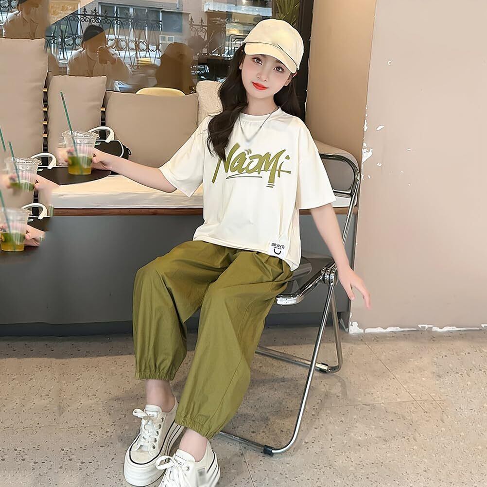 [OUBINEWER] 女の子 ジャージ 上下セット 2点セット 子供服 ガールズ スポーツウェア スウェット 半袖ジャージ トップス+ ロングパンツ カジュアル
