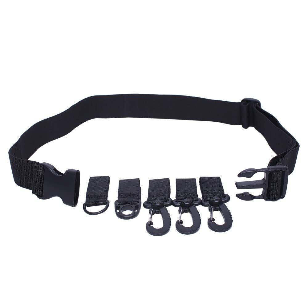 [siawadeky] フィッシングベルト 釣り 腰ベルト 5個のフック付き ウェーディングベルト 釣り用品 小物吊り下げ用 ベルト サイズ調整可能 多機能 サバゲー装備 バックサポートベルト アウトドア 釣り 長さ約130cm