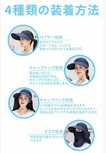 【ガーデニング帽子 - 多目的】取り外し可能な帽子、多目的、多目的を身に着けている。 自由に組み合わせして使用できる4wayタイプお肌を紫外線からしっかり守ります。紫外線アレルギーなどでお困りの方に最適な 帽子です。